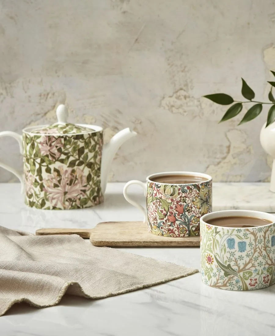 Идеальный чайный набор на двоих от двух известных британских брендов с богатой историей - Spode и Morris Co. Чайник украшен узором «Жимолость» с извилистыми цветами, а кружки - культовыми изображениями терновника и золотой лилии. Этот набор создан для того, чтобы комбинировать разные предметы. Незаменимое дополнение к вашему дому, этот набор станет идеальным подарком для вас или ваших близких.