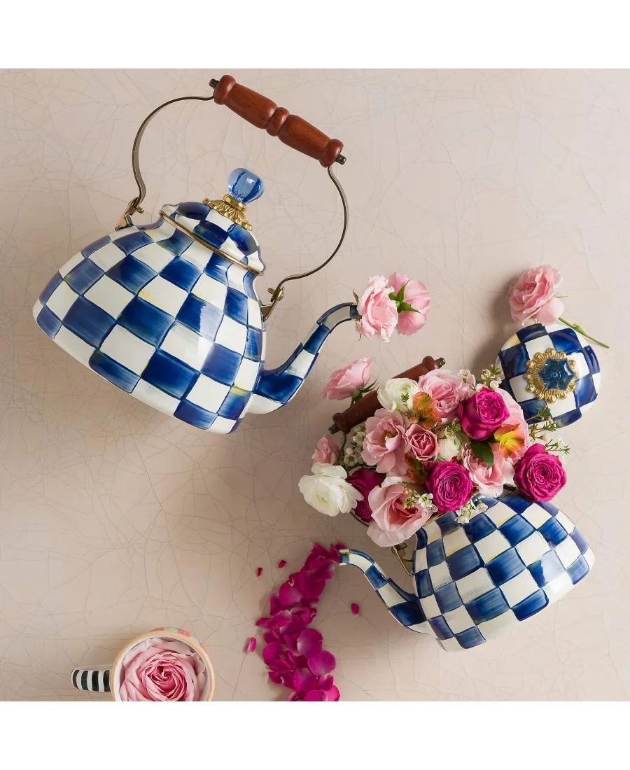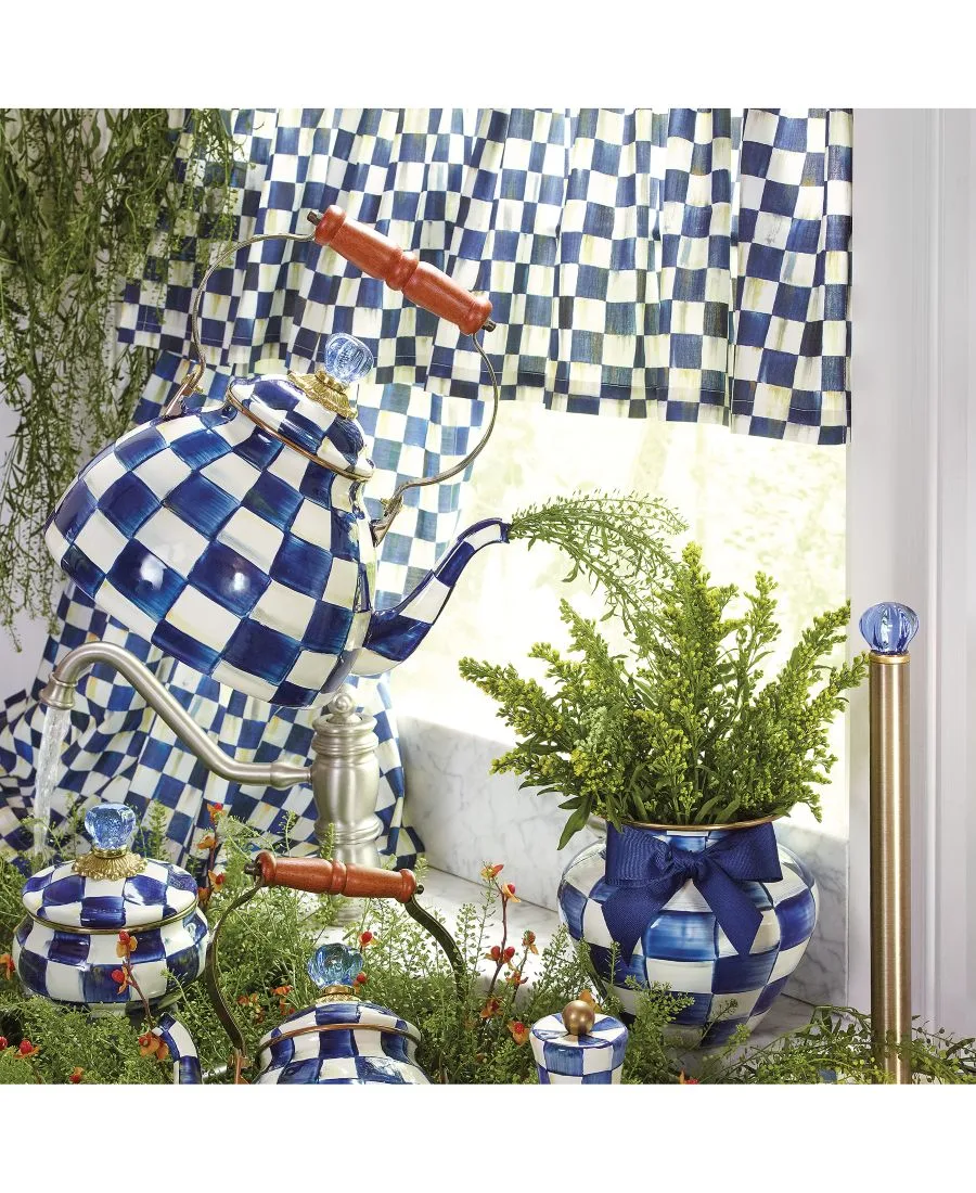 Этот изысканный чайник Mackenzie-Childs, идеально подходящий для украшения вашей плиты, позволит угостить гостей послеобеденным чаем, а его ручная роспись выполнена в красивом синем клетчатом узоре Courtly Checks.
