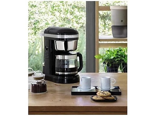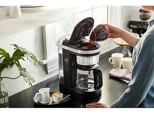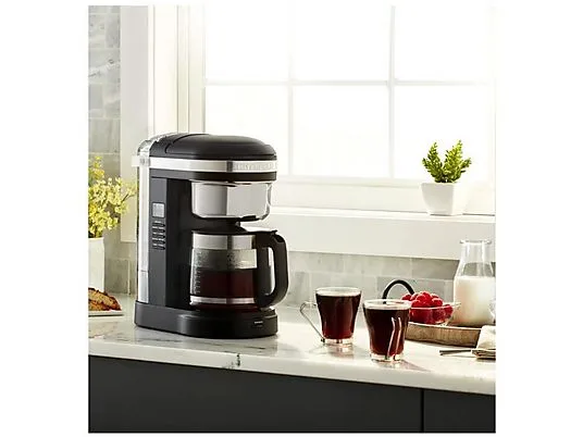 : С капельной кофемашиной на 12 чашек вы сможете наслаждаться вкусным кофе в любое время. Эта кофемашина разработана для того, чтобы вы могли приготовить кофе с желаемым вкусом и ароматом, превращая приготовление идеальной чашки в удовольствие. Спиральный рассекатель воды с 29 отверстиями обеспечивает равномерное смачивание молотого кофе, придавая чашке насыщенный аромат благодаря оптимальной экстракции. Кнопка выбора крепости позволяет выбрать между обычной и крепкой заваркой, обеспечивая чашку ароматного кофе по вашему вкусу. Благодаря индикаторам дозировки на многоразовом золотистом фильтре и резервуаре для воды приготовление кофе больше не будет догадкой. Каждая чашка станет идеальным удовольствием. Уникальный носик стеклянного кувшина предотвращает капание и проливание кофе, обеспечивая легкое наливание в чашки любого размера и формы. С этой капельной кофемашиной вы можете приготовить кофе, когда захотите - благодаря двум автоматическим настройкам программирования ваш кофе будет готов и ждать вас в любое время дня. Функция «Пауза и наливание» позволяет прервать процесс заваривания в любое время и насладиться вкусной чашкой кофе еще до его завершения. А с программируемой функцией поддержания тепла ваш кофе сохранит желаемую температуру до 40 минут. Идеально, если утром вам нужно немного больше времени. Современная и элегантная капельная кофемашина KitchenAid станет украшением любой кухонной столешницы.