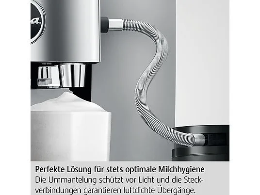 Молочный шланг, заключенный в высококачественную спиральную пружину из нержавеющей стали, соединяет контейнер для молока с носиком для молока, тем самым завершая элегантный общий дизайн любой автоматической кофемашины. Непрозрачная оболочка из благородного материала обеспечивает наилучшую защиту от УФ-лучей и воздействия света. Точно подогнанные штекерные соединения обеспечивают герметичные переходы. Этот молочный шланг, готовый к немедленному использованию, является идеальным решением для всегда оптимальной гигиены молока. Молочный шланг с оболочкой из нержавеющей стали можно обрезать по желанию, но рекомендуется предустановленная длина 23 сантиметра. Вы можете легко подключить молочный шланг с оболочкой из нержавеющей стали к вашей автоматической кофемашине в соответствии с прилагаемым информационным листком. Совместим с: Z8 Z6 J6 / J60 / J600 S8 / S80 E8 Chrome GIGA X8cG2 / X8G2 X8Посмотреть информацию о продукте JURA