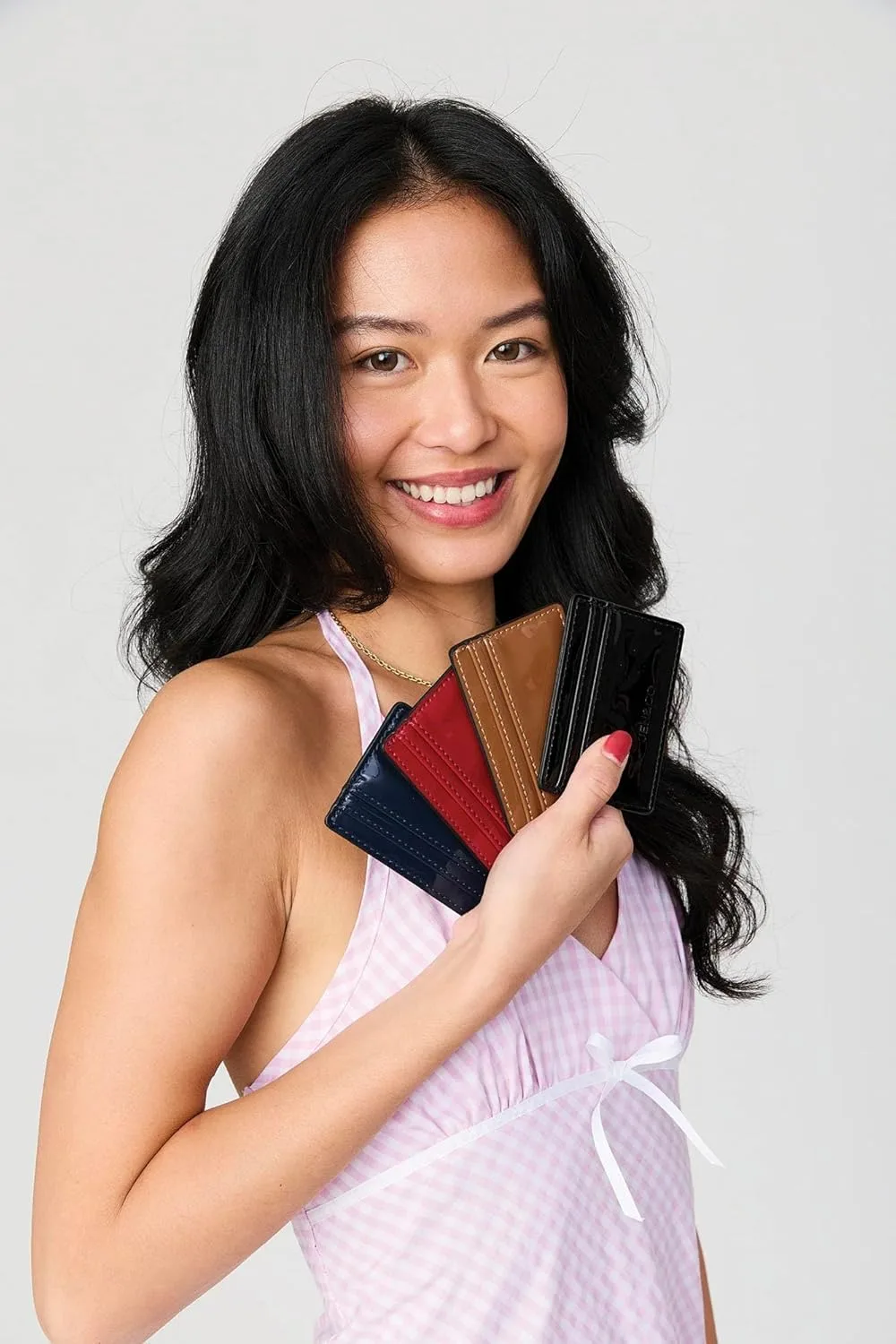 Глянцевая отделка: придает элегантный и изысканный вид. | Центральный накладной карман: идеально подходит для хранения наличных денег или чеков. | Четыре отделения для карт: позволяют хранить необходимые вещи в порядке и легкодоступными. | Длина: 4 дюйма | Высота: 2,75 дюйма