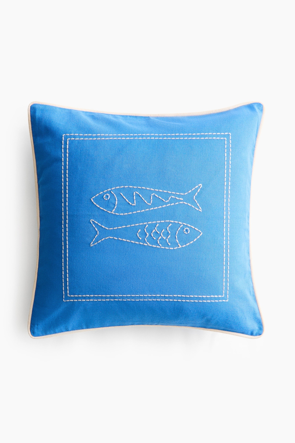 Эта наволочка изготовлена из хлопчатобумажной ткани. На лицевой стороне она украшена вышитым узором, а по краям – контрастной окантовкой. Сзади имеется потайная молния.
