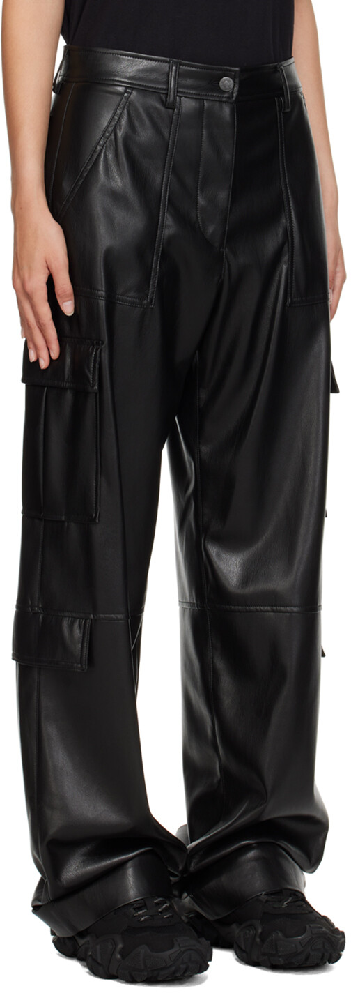 MSGM Черные брюки-карго из искусственной кожи с карманами