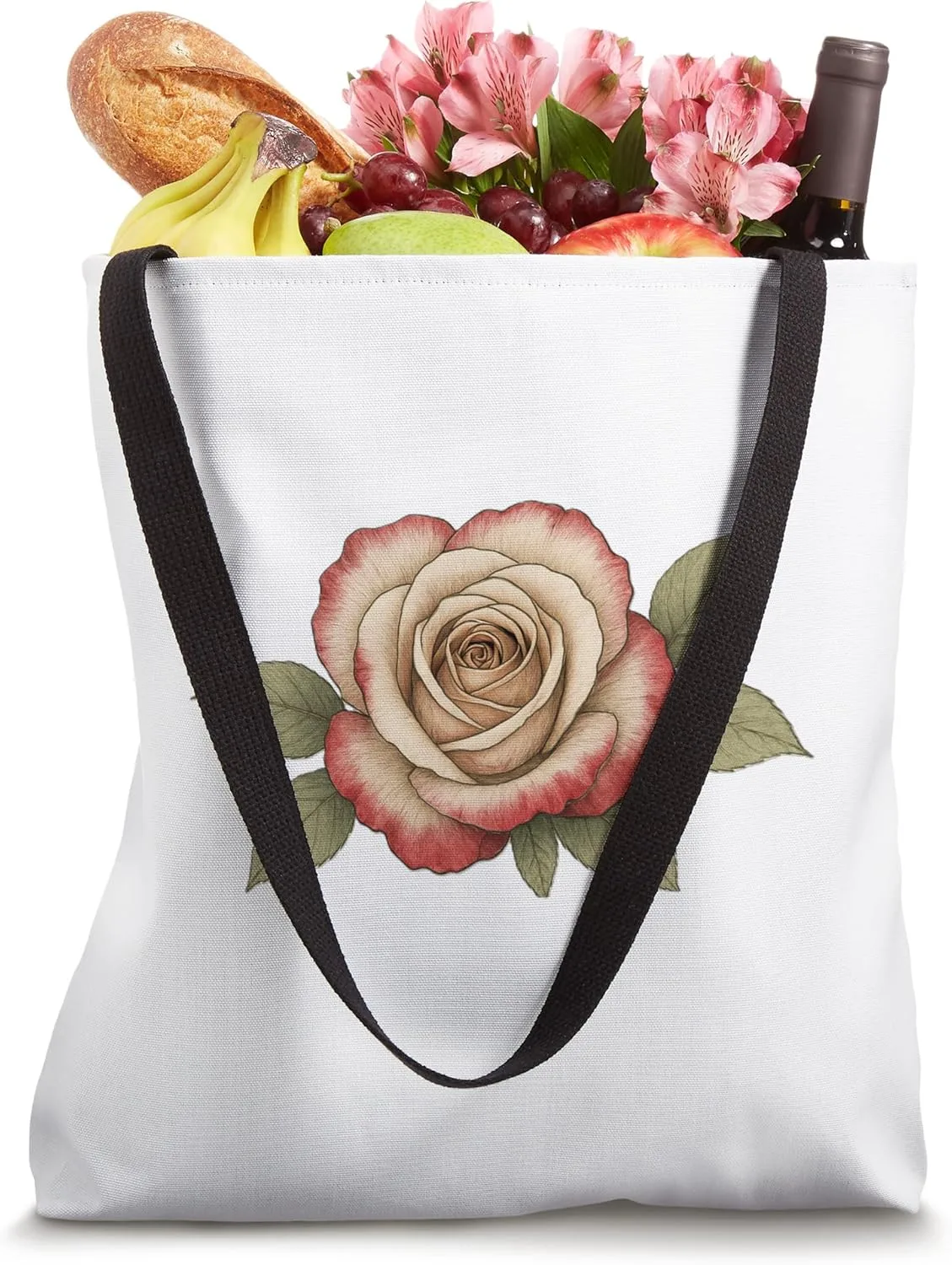 Сумка-шоппер с изображением одиночной розы и множества лепестков. Простая, но элегантная модель для повседневного использования.