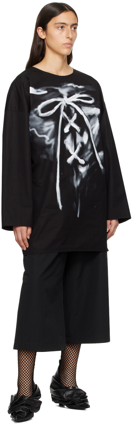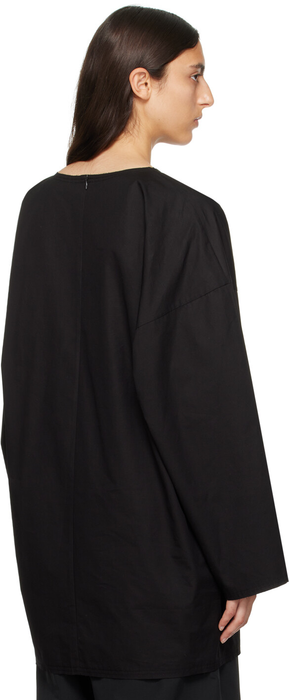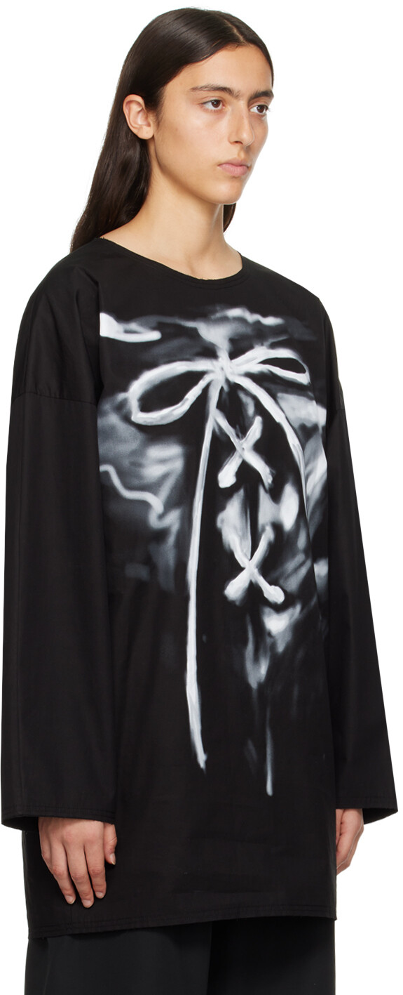 Черная футболка с длинным рукавом Raw Edge. Футболка из хлопкового поплина. Необработанный край повсюду. Круглый вырез Графический принт спереди. Потайная застежка-молния сзади. Цвет поставщика: черный. 100 % хлопок. Сделано в Южной Корее.