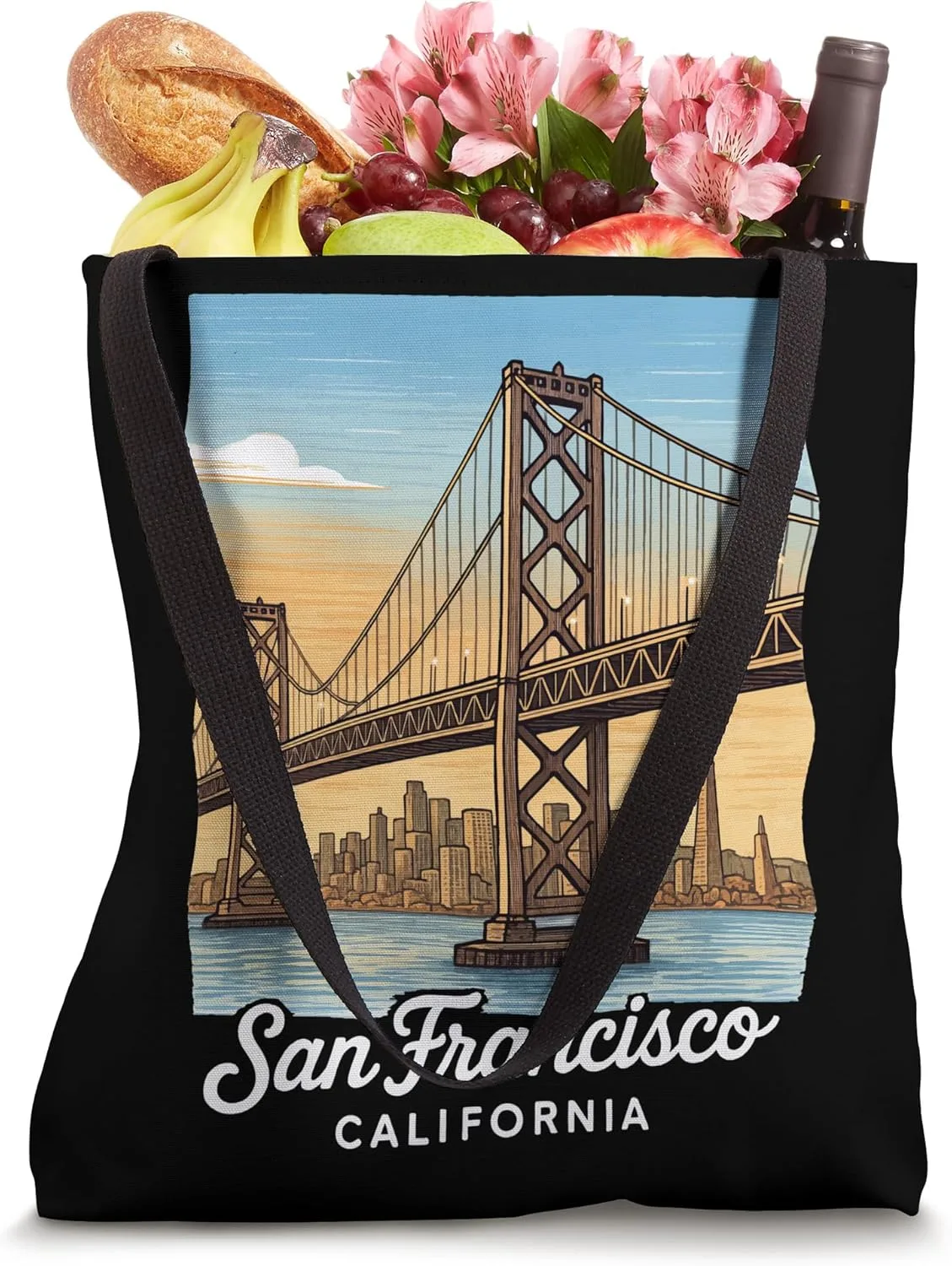 Сан-Франциско, Калифорния Сумка размером 16 x 16 дюймов с двумя ручками из черной хлопчатобумажной ленты длиной 14 дюймов и шириной 1 дюйм. Изготовлено из легкой, крученой полиэстеровой ткани, напоминающей холст. Все швы и места, подверженные нагрузке, прошиты двойным швом для прочности, а усиленное дно складывается, позволяя разместить больше вещей и удерживать более крупные предметы. Только точечная чистка/химчистка.