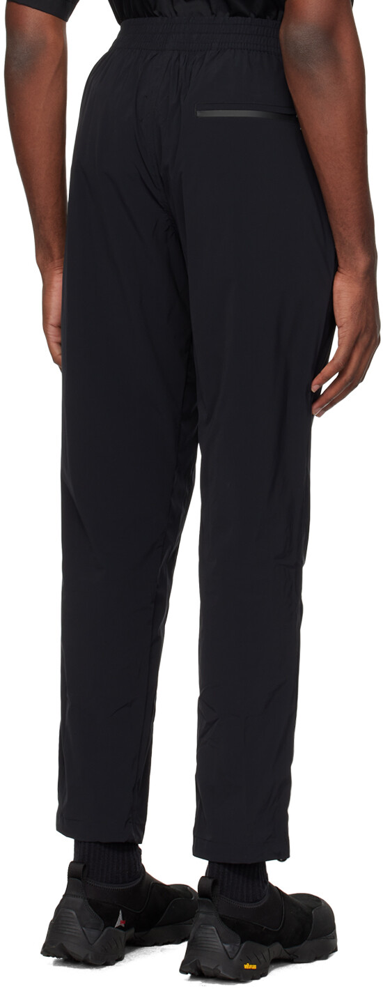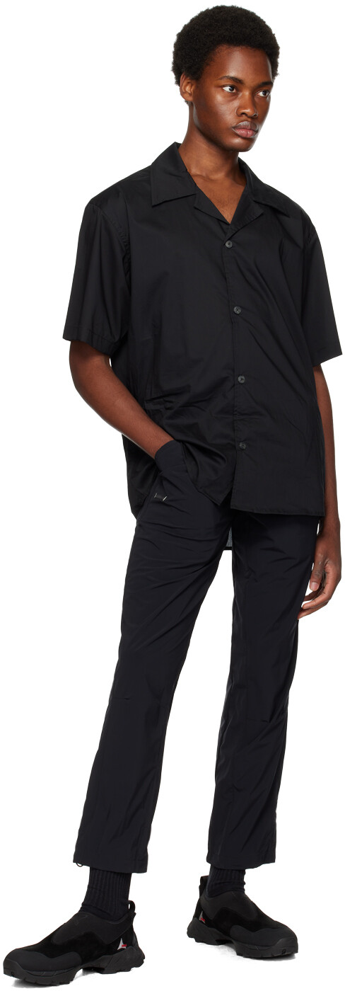 Черные повседневные спортивные брюки Steve. Спортивные брюки прямого кроя ручной работы из эластичной регенерированной нейлоновой тафты. Ветроустойчив и водоотталкивающий. Потайная кулиска на эластичном поясе. Три кармана. Нашивка с логотипом спереди. Складчатые колени. Завязка на манжетах в стиле банджи. Цвет поставщика: Cosmic 85 % регенерированный нейлон, 15 % эластан. Сделано в Пакистане.