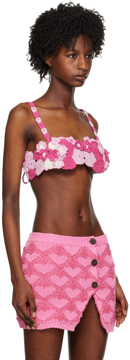 Розовый бюстгальтер с вырезом в форме сердца. Бюстгальтер ручной вязки из смеси хлопка и льна. Вырез в форме сердца. Регулируемые бретели. Застежка-самозавязка сзади. Без подкладки. Цвет поставщика: Фуксия. 70 % хлопок, 25 % лен, 5 % полиамид. Сделано в Италии.
