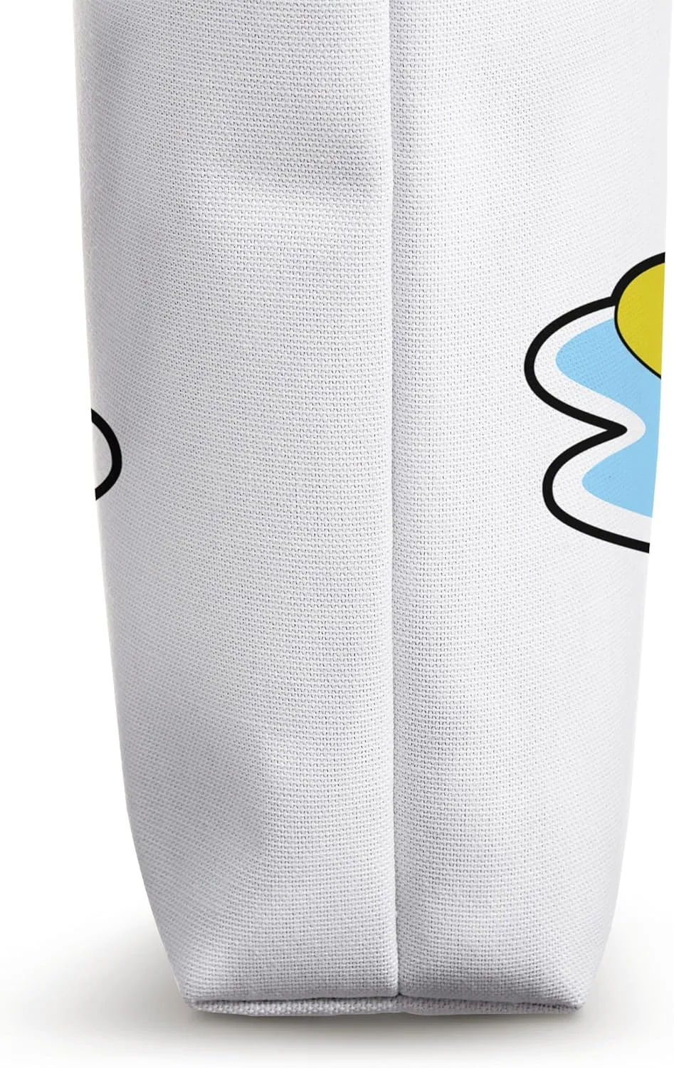 Сумка размером 16 x 16 дюймов с двумя ручками из черной хлопчатобумажной ленты длиной 14 дюймов и шириной 1 дюйм.