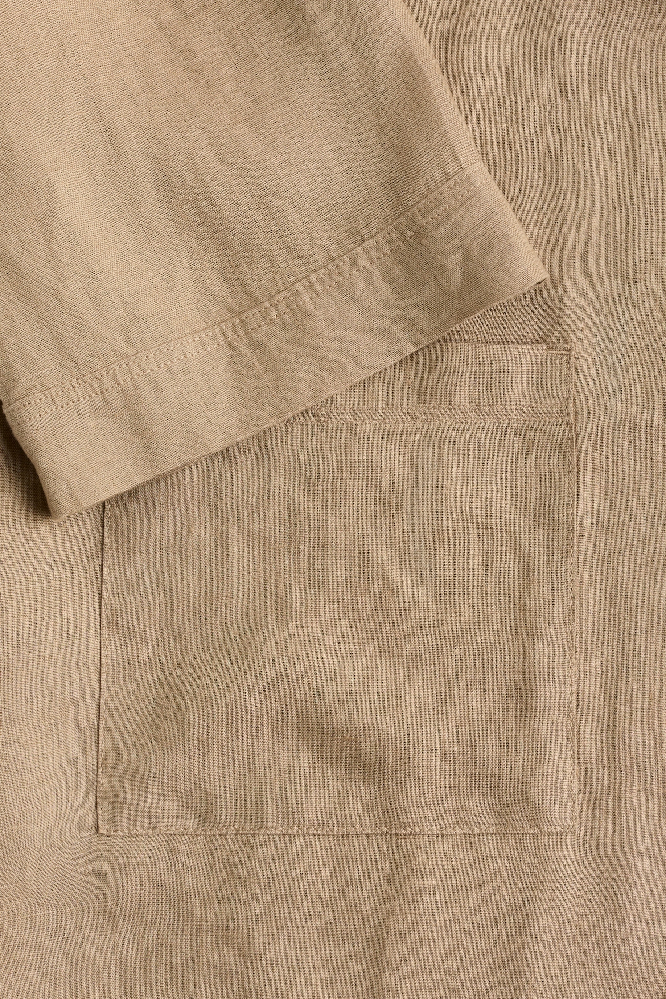 Халат из льна с двумя передними карманами и съемным поясом для завязывания на талии.