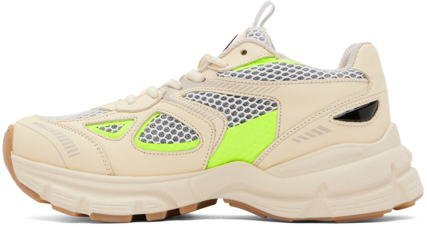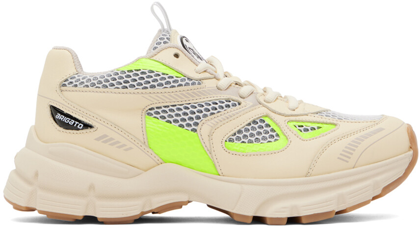 Бежевые марафонские кроссовки. Бежевые кроссовки ручной работы из полированной кожи и сетки с низкими вставками. Проклеенная отделка по всей длине. Застежка на шнуровке Прорезиненная нашивка с логотипом и петля на язычке Уплотненный язычок и воротник Напечатан логотип на внешней стороне Съемная мягкая стелька Сетчатая подкладка Резиновая подошва с протектором Цвет поставщика: Желтый/Неоновый Верх: текстиль, кожа. Подошва: резина. Сделано в Португалии.