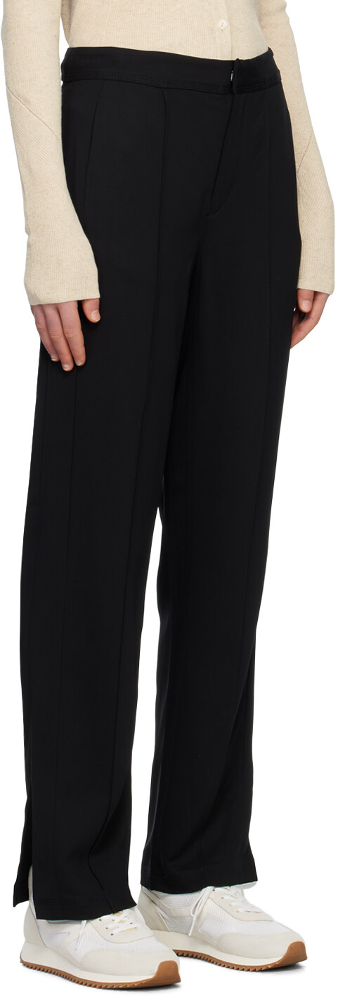 Черные брюки Кэмерон. Широкие брюки из вискозного крепа стрейч. Модель с двумя карманами. Застежка-молния. Защипанные швы спереди. Вентилируемые внешние швы. Цвет поставщика: черный. 97 % вискоза, 3 % спандекс. Сделано в Индии.