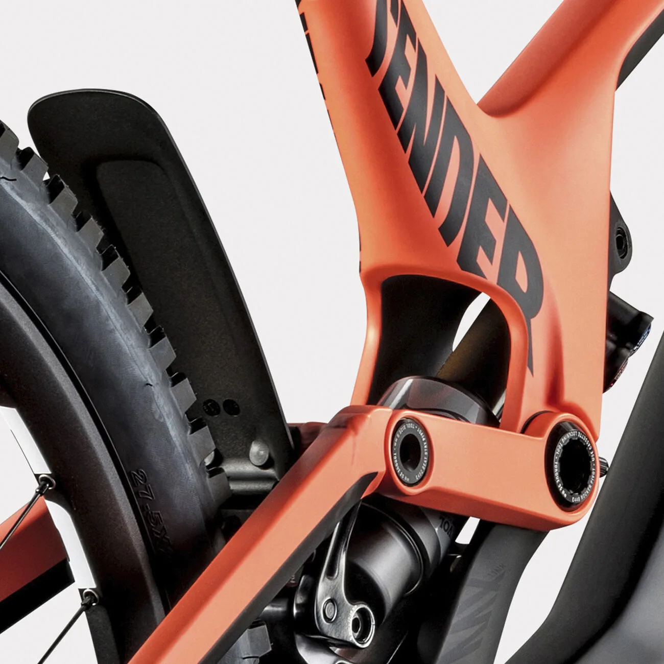Он защищает задний амортизатор от камней и грязи. Дизайн идеально сочетается с агрессивным внешним видом нашей машины для скоростного спуска.
