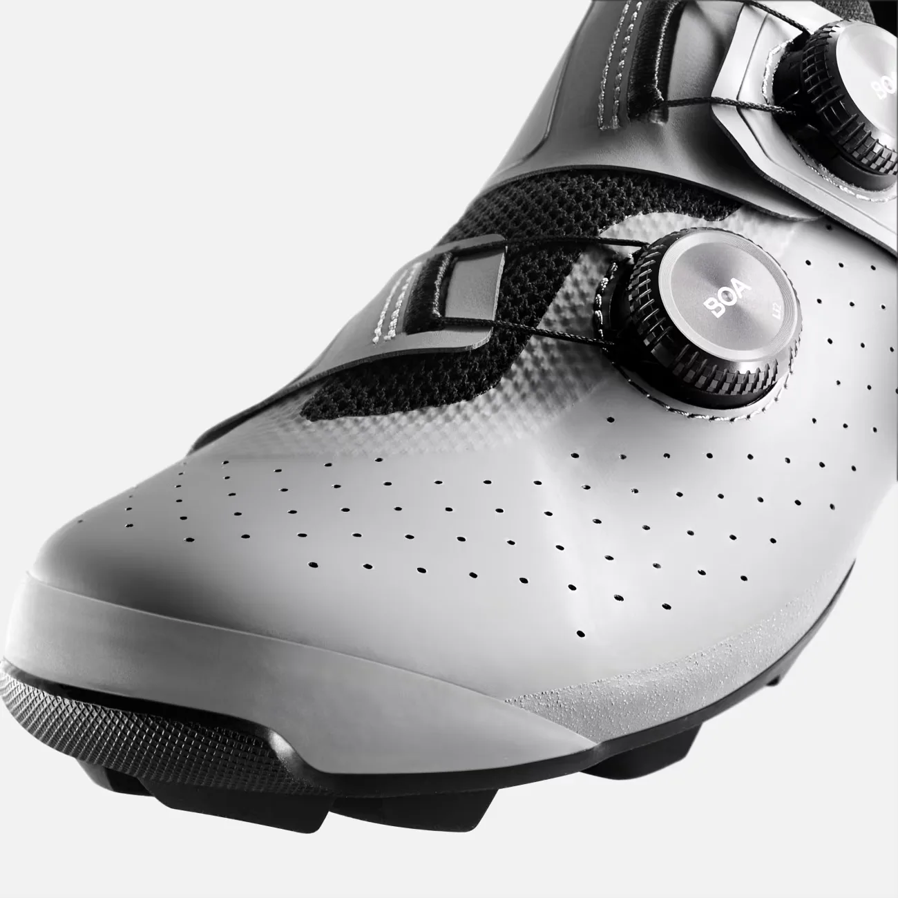 Плавающий ремешок Система, разработанная в сотрудничестве с BOA, охватывает пятку и свод стопы, фиксируя стопу и исключая нежелательные движения. Кроме того, два циферблата из анодированного алюминия BOA Li2 обеспечивают высокоэффективную застежку, прочную и легко заменяемую.