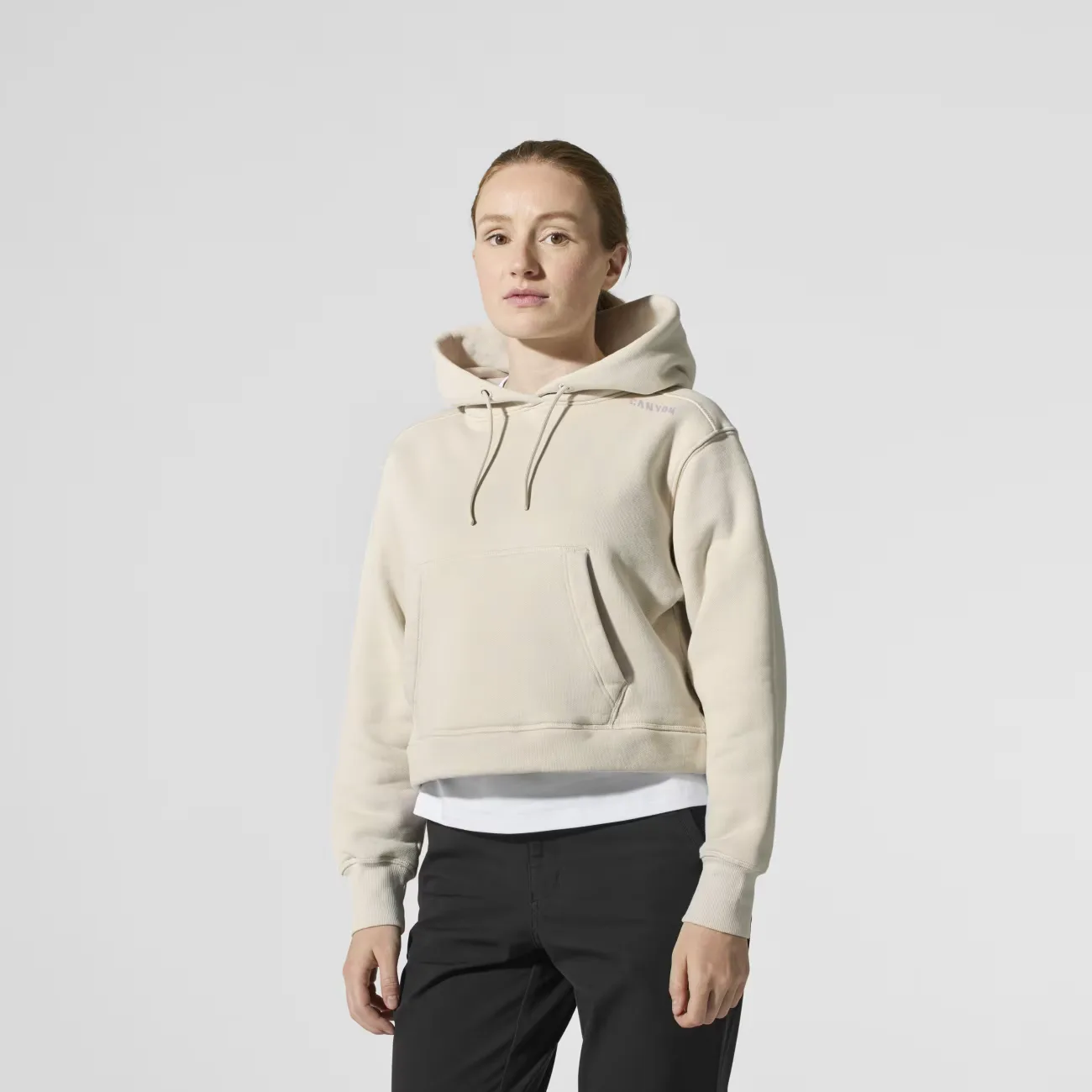 Женская толстовка Canyon короткого укороченного кроя, 100 % хлопок, принт высокой плотности, логотип Sonic Welding Berg, карман-кенгуру, махровое полотенце внутри, ребристые манжеты и пояс.