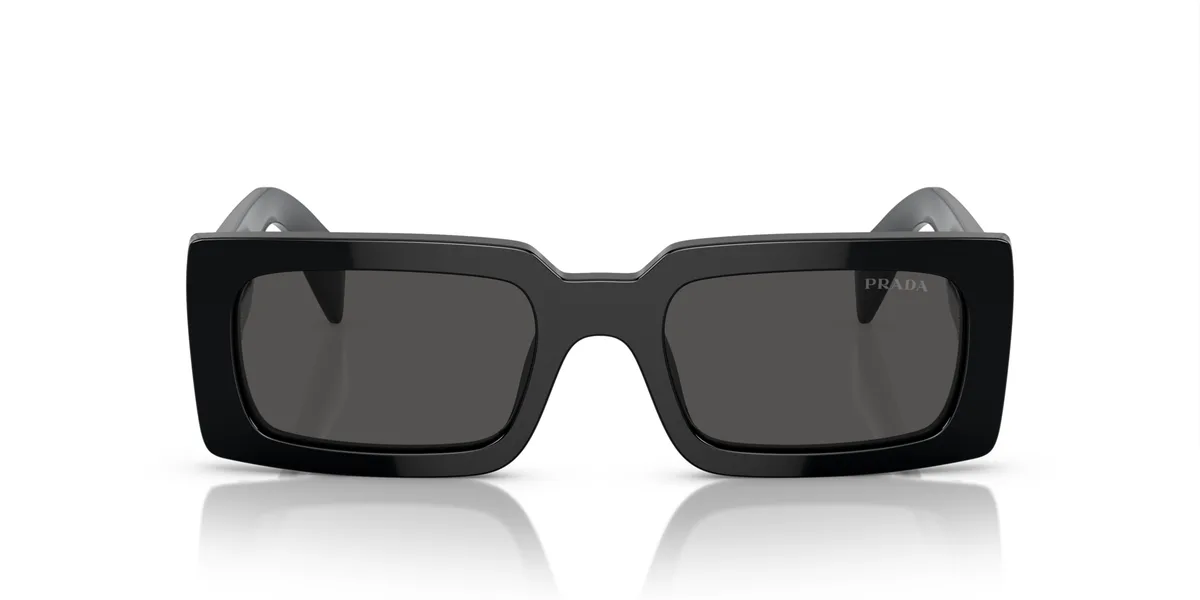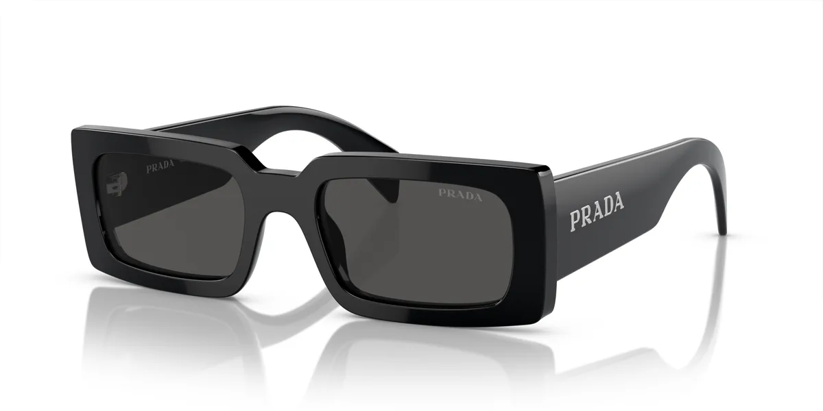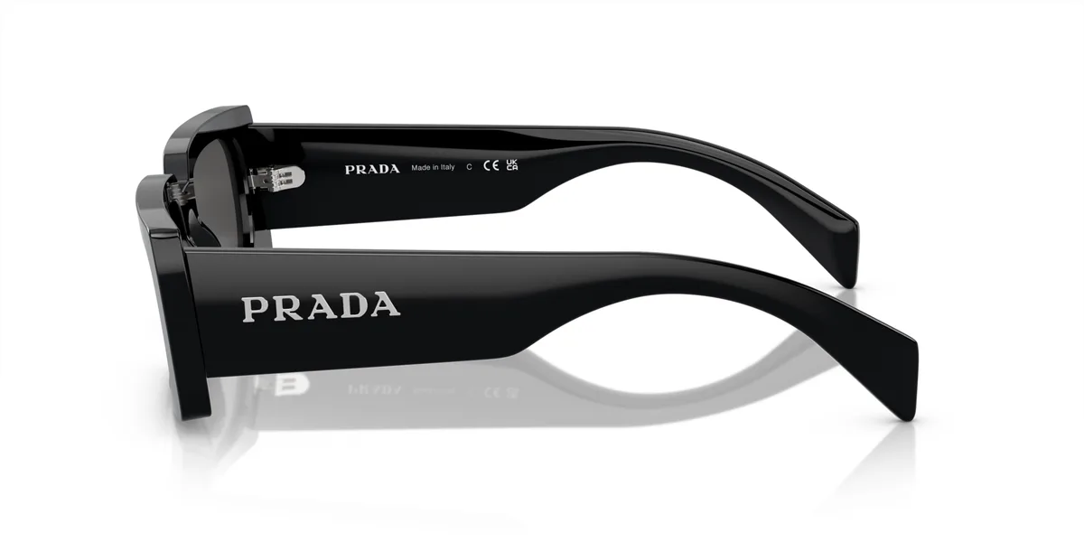 PRADA PR A07S СОЛНЦЕЗАЩИТНЫЕ - элегантные черные женские солнцезащитные очки из пластика; смелый и универсальный дизайн для выразительного образа.