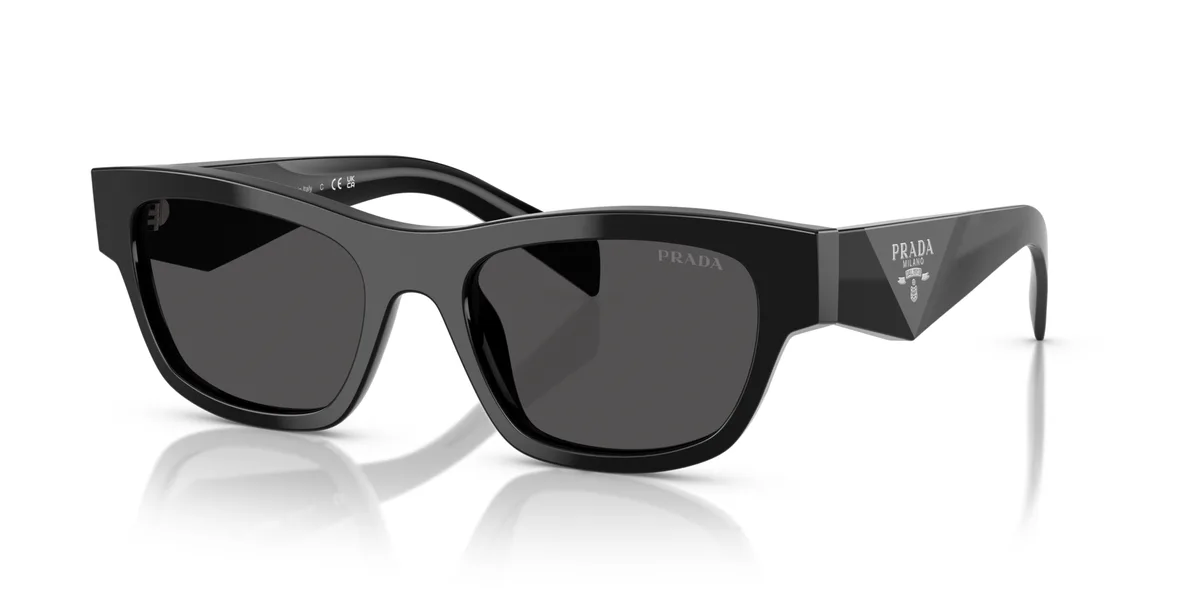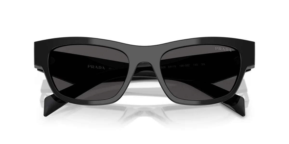 PRADA PR B09S СОЛНЦЕЗАЩИТНЫЕ - строгие черные очки из высококачественного ацетата для стильных и уверенных женщин. Современный силуэт сочетает комфорт и городскую изысканность.