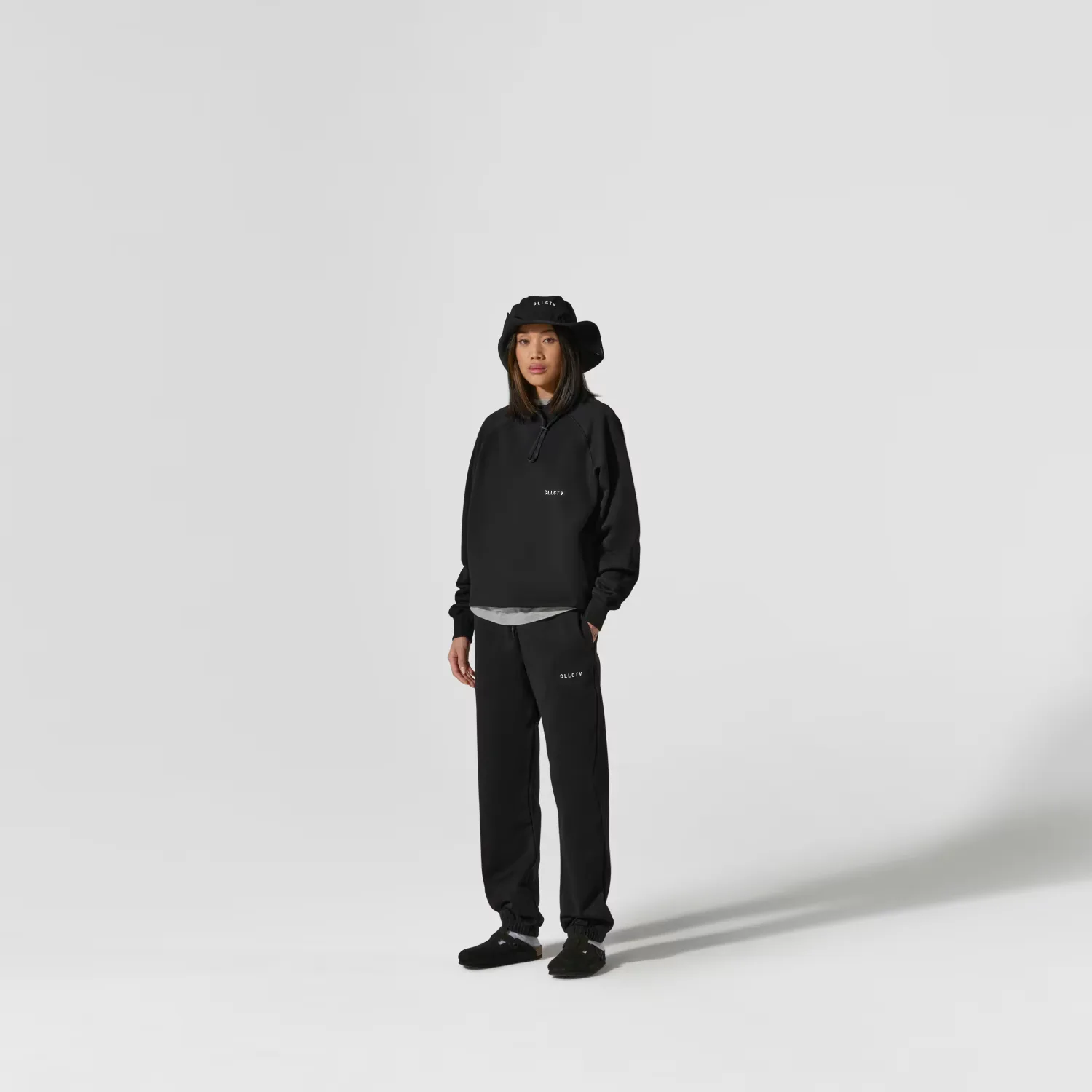 Печать CLLCTV высокой плотности на американском флисе плотностью 440 г/м², изготовленном из 100% хлопка (мерсеризованного). «Мерсеризация» означает процесс отделки, при котором хлопковые волокна обрабатываются специальным раствором, чтобы сделать их более блестящими, прочными, гладкими и более устойчивыми к разрыву.