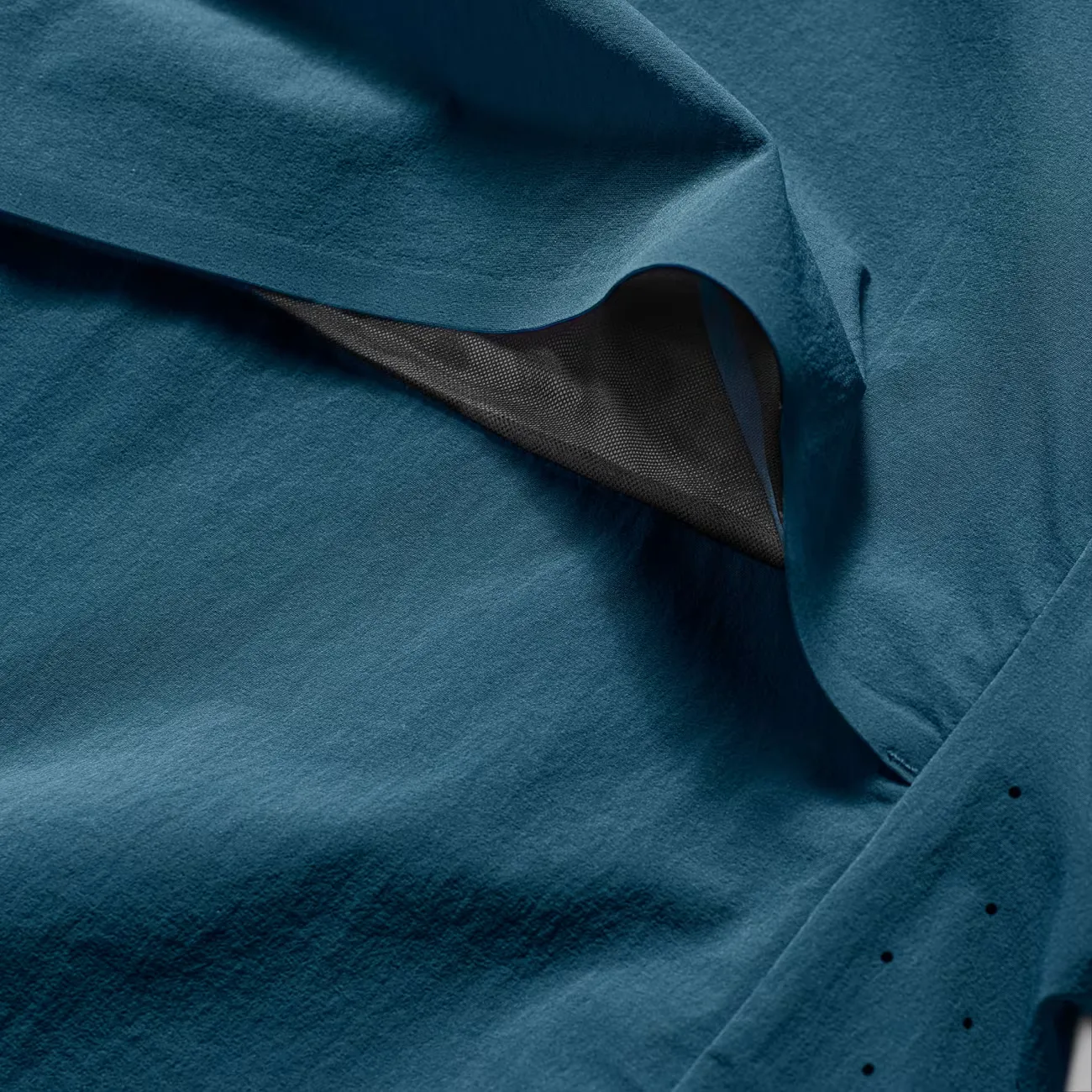 Используемый материал Muru представляет собой высокоэффективную ткань, изготовленную из пряжи ECONYL, изготовленной из переработанных нейлоновых отходов, таких как рыболовные сети, ковры и промышленный пластик. Он эластичен и обеспечивает максимальную свободу движений и воздухопроницаемость. Кроме того, куртка имеет удлиненное вентиляционное отверстие с сетчатой ​​вставкой сзади для улучшения циркуляции воздуха и предотвращения перегрева.