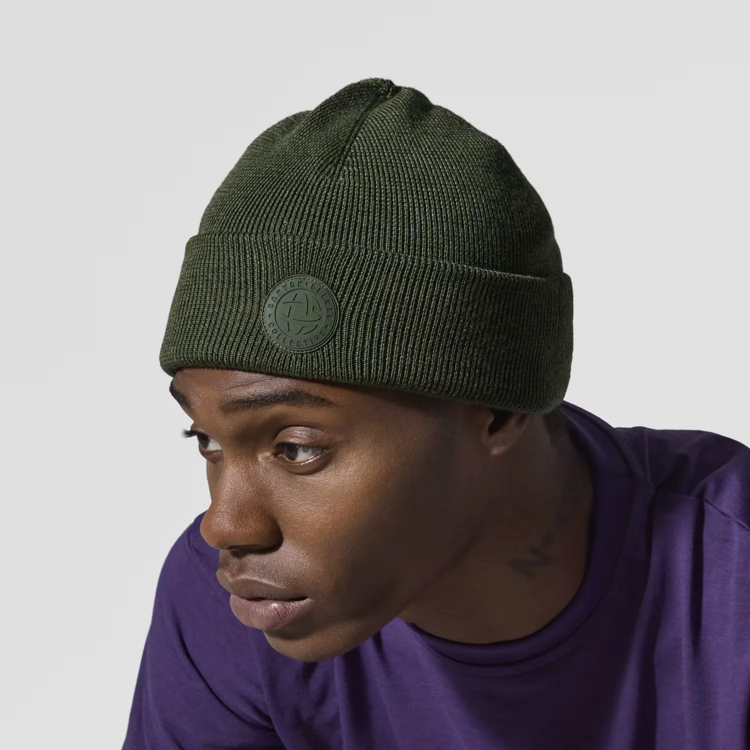 CLLCTV Gorpcore Lane Beanie имеет небольшую, расположенную по центру резиновую нашивку CLLCTV 3D соответствующего цвета.