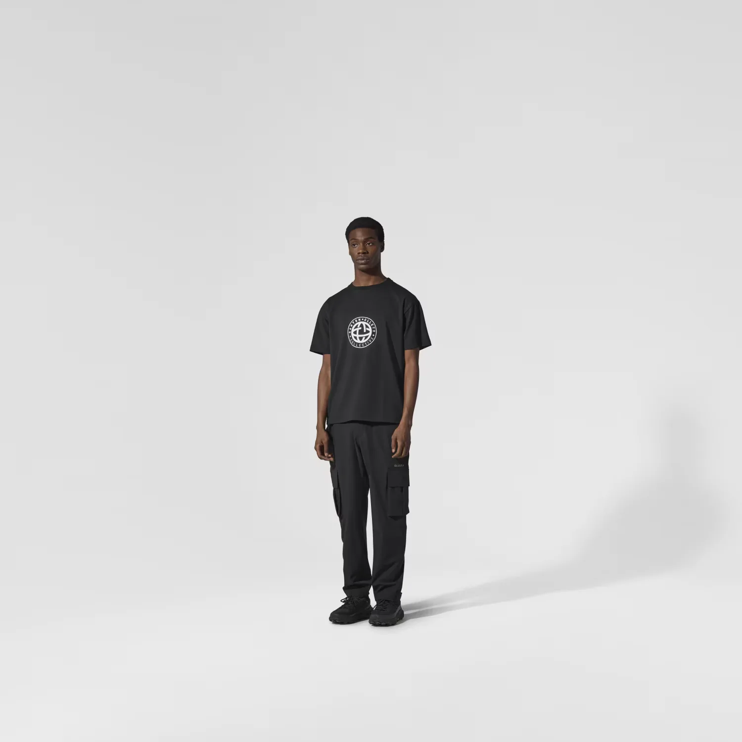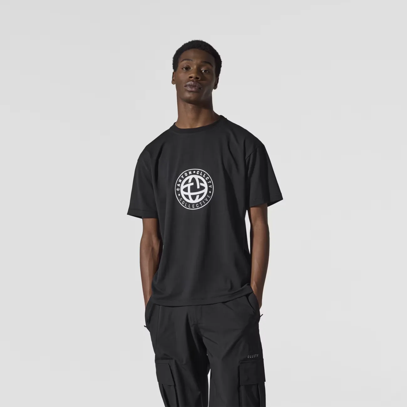 Футболка свободного кроя, ткань сухого отделения, принт CLLCTV высокой плотности, тканая этикетка, круглый вырез в рубчик.