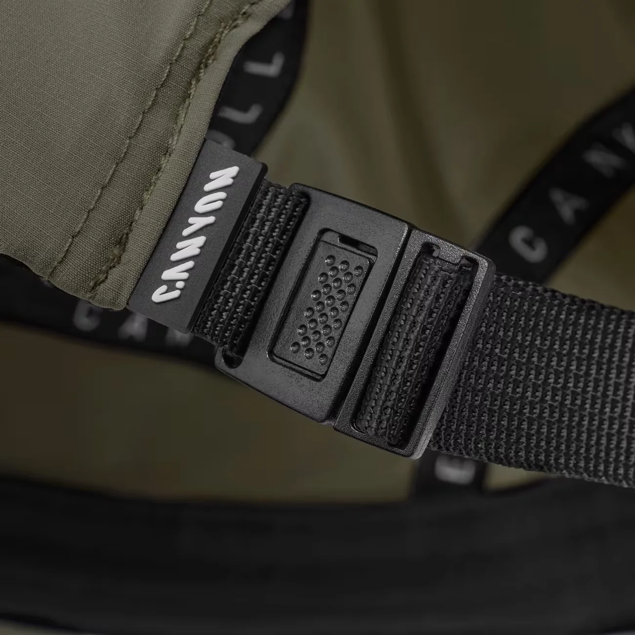 Застежку можно быстро отрегулировать, а внешний вид выглядит превосходно благодаря резиновой этикетке Canyon. Выступающий конец застежки можно просто вставить в кепку.