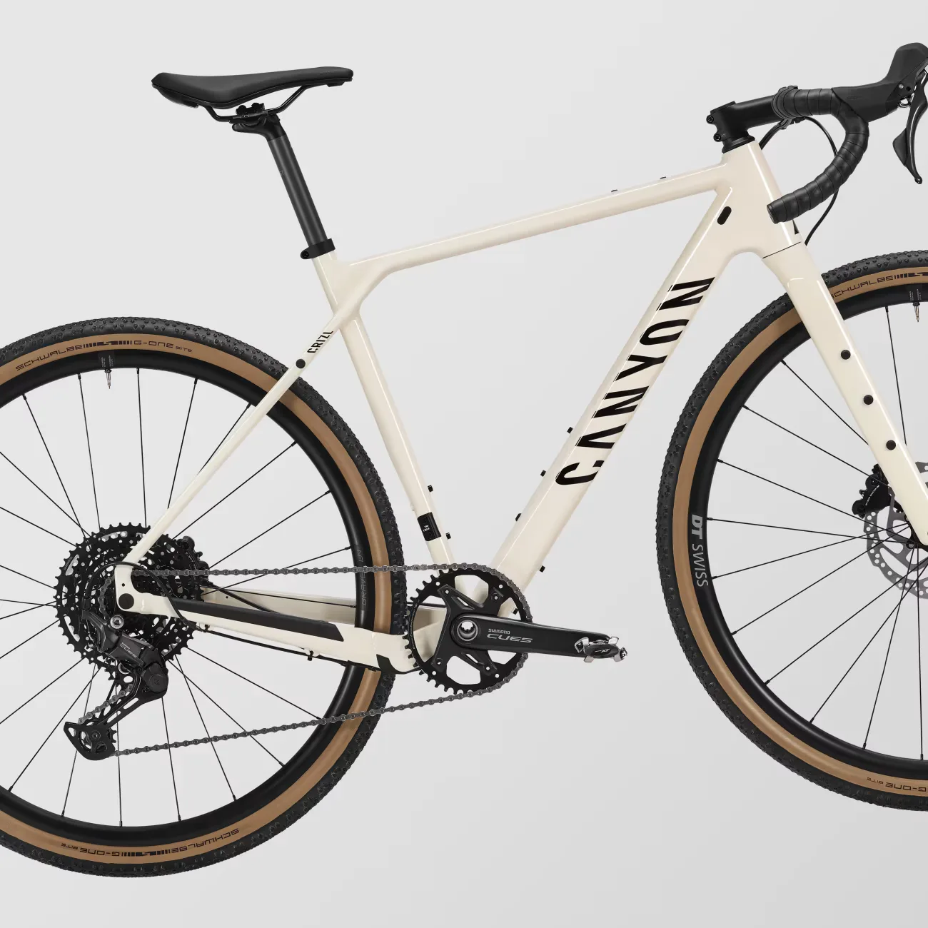 Ваши шины, ваш выбор. Grizl в стандартной комплектации оснащен шинами диаметром 45 мм с дополнительным зазором для резины диаметром 50 мм для экстремальной езды по гравию (максимум 45 мм с крыльями). Для этого нам пришлось расширить границы во многих областях, например, с опущенными нижними перьями со стороны привода. Он чрезвычайно тонкий, но при этом обеспечивает структурную поддержку и внутреннюю прокладку кабелей.