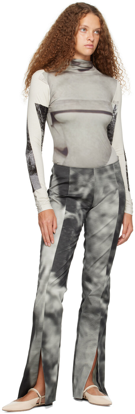 Серые джинсы Handsy. Джинсы из эластичного денима, сертифицированного BCI, из смесового органического хлопка. Графика напечатана повсюду. Разрез на манжетах. Потайная застежка-молния по боковому шву. Цвет поставщика: принт мульти. 60 % органический хлопок, 38 % хлопок, 2 % эластан. Сделано в Словении.