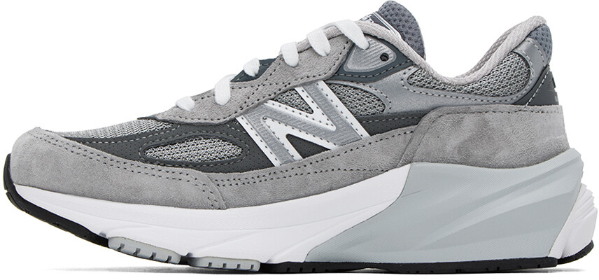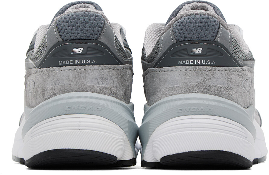 Серые кроссовки Made In USA 990v6. Серые кроссовки из замши, сетки и резины с низкими вставками из свиной кожи. Застежка на шнуровке. Нашивка с логотипом на мягком язычке. Мягкий воротник. Аппликация с логотипом. По бокам сетчатая подкладка Текстурированная резиновая межподошва ENCAP® FuelCell Резиновая подошва с протектором Цвет поставщика: серый Верх: свиная кожа, текстиль. Подошва: резина. Сделано в США.