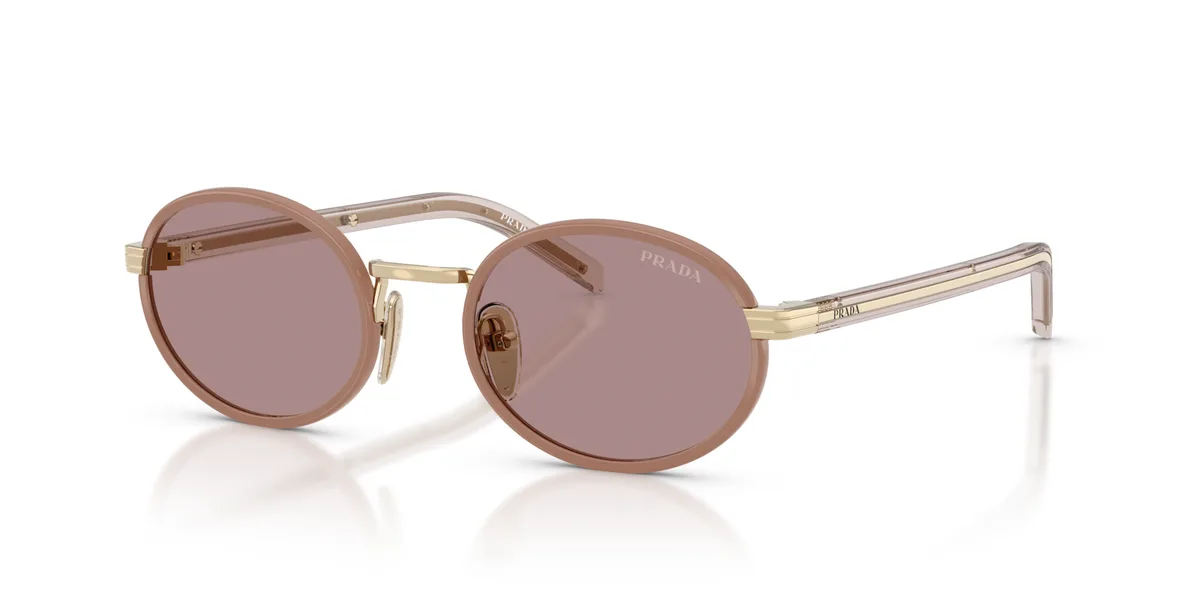 PRADA PR B56S СОЛНЦЕЗАЩИТНЫЕ - женские металлические очки в оттенке Pecan, дарящие мягкость и шарм классического дизайна. Идеальны для тех, кто ценит сочетание комфорта и модной эстетики.