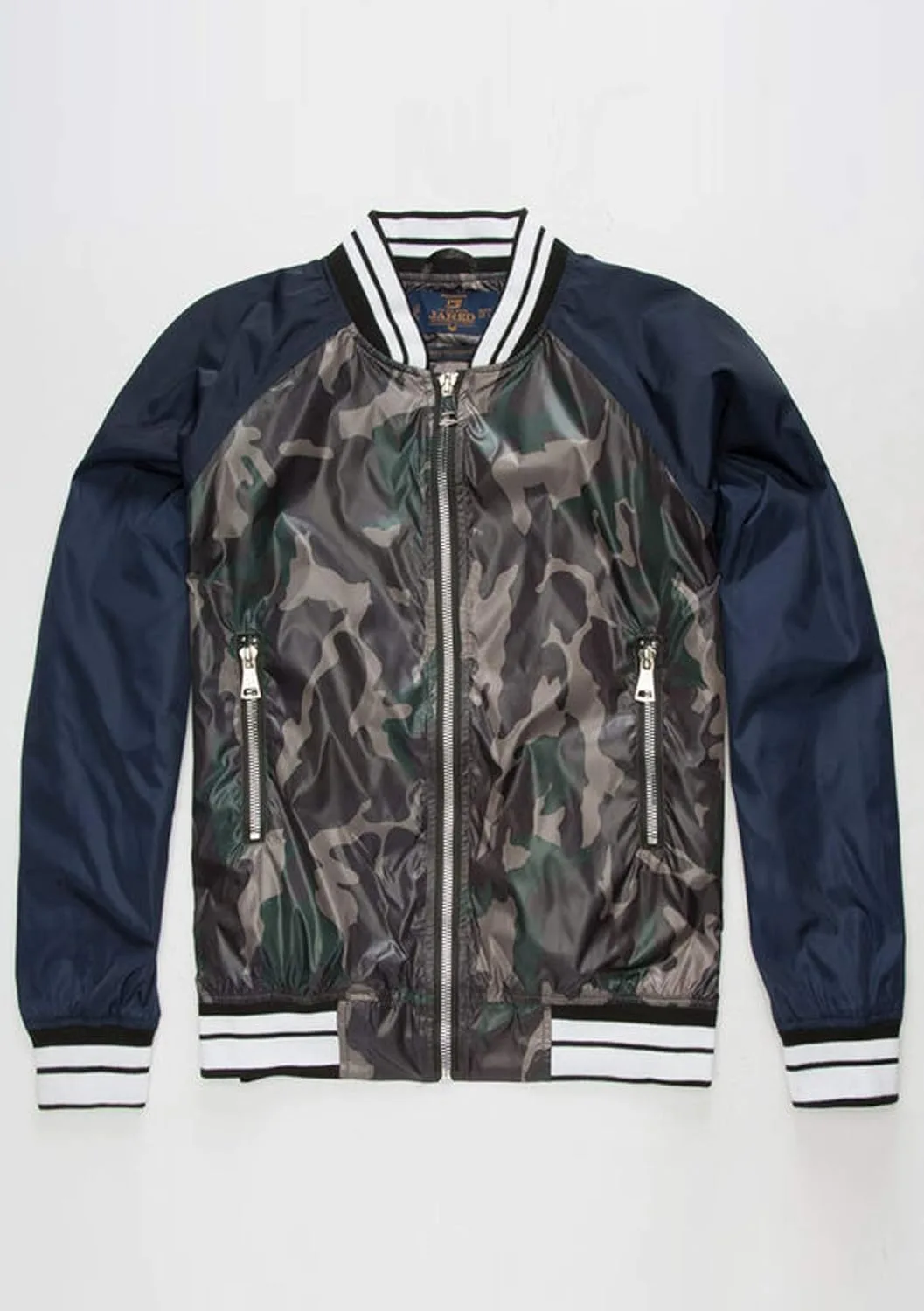 Бомбер Jared. Классический бомбер на молнии. Боковые карманы на молнии. Длинные рукава реглан. Ребристые манжеты, воротник и нижний край. Подкладка из тафты с камуфляжным принтом. 100% полиэстер. Машинная стирка. Импортный товар.