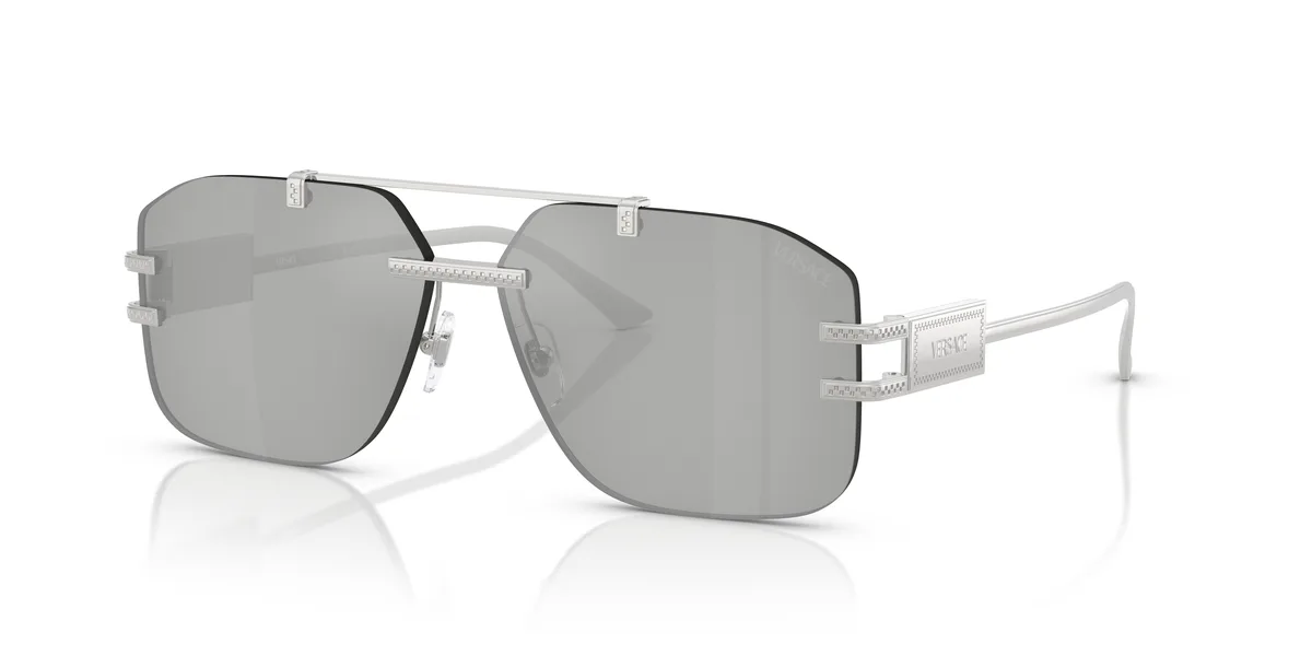 VERSACE VE2275 СОЛНЦЕЗАЩИТНЫЕ - мужские серебристые солнцезащитные очки из металла с современным, мужским характером и ярким акцентом. Прочная оправа и выразительный дизайн дарят комфорт и уверенное присутствие.