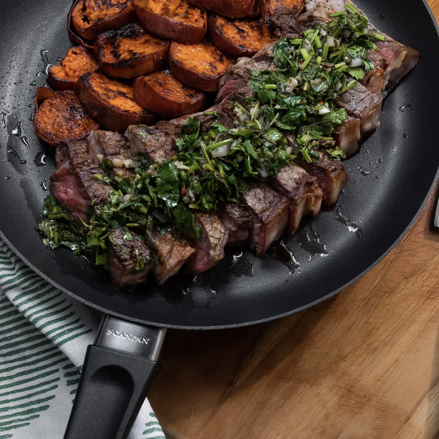 Сковорода Scanpan Classic диаметром 25 см - это сковорода среднего размера, идеально подходящая для обжаривания овощей или приготовления пары куриных бедер. Кухонная посуда Scanpan Classic разработана для приготовления на высокой температуре, такого как жарка, обжаривание или тушение, равномерно распределяет тепло, а наклонные стенки упрощают переворачивание и перемешивание пищи. Посуда Scanpan Classic производится с использованием запатентованной керамико-титановый антипригарной технологии. Керамико-титановое покрытие обеспечивает невероятную антипригарность и при этом сковорода не боится металлических кухонных принадлежностей! Сделано в Дании. Можно мыть в посудомоечной машине.