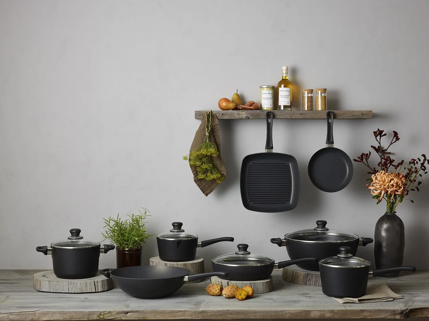Материал сковороды: нержавеющая сталь Особенности: совместимость с индукцией Количество предметов: 10 Бренд: Scanpan Цвет: черный Отделка ручки: матовая Вес: 873 г В комплекте: сковорода, сотейник, кастрюля, крышка С письменной гарантией: нет Высота: 36 см Отделка: матовая