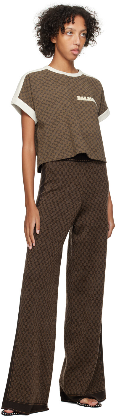 Balmain Коричневые мини-брюки для отдыха с монограммой