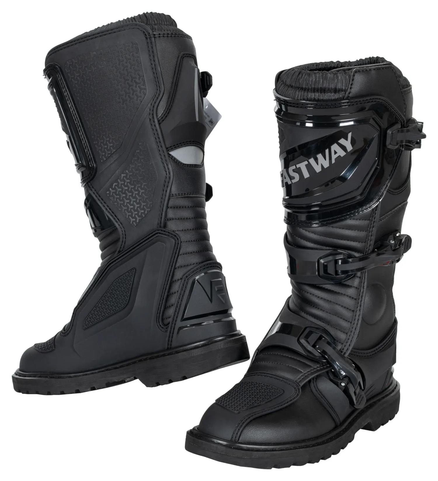 Тебе нужны ещё несколько классных мотоботинок для приключенческих туров, таких, на которых кажется, как будто прочность и стойкость высечены прямо на голенище? Высокие ботинки Fastway *S-2402* будут для тебя абсолютно подходящим вариантом. Прочный верх из микрофибры, который не дает воде и грязи ни малейшего шанса. Кроме того, точные возможности подгонки под ногу и голень, удобная посадка и внедорожный вид. С Fastway *S-2402* ты не ошибёшься - и всё это по доступной цене для ботинок с прошитой рамой!