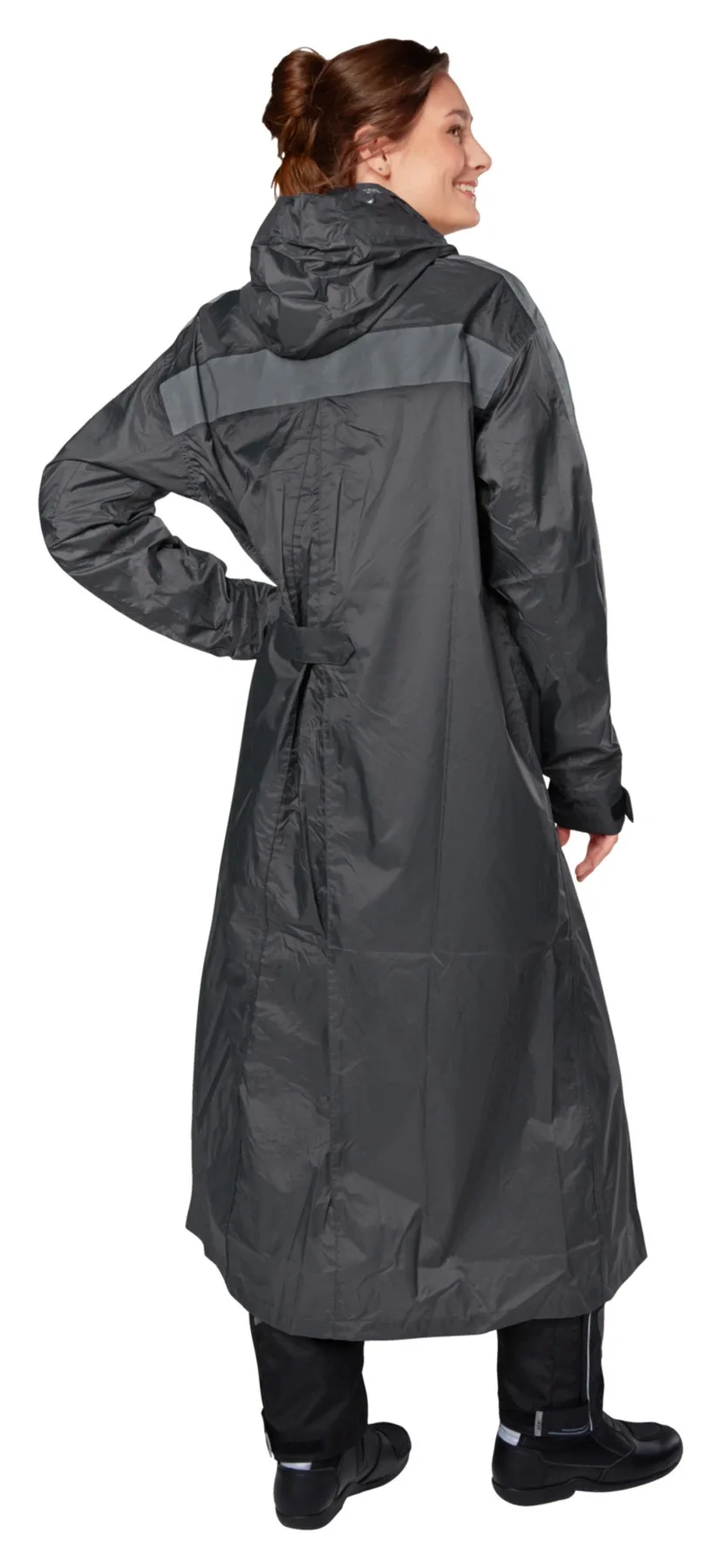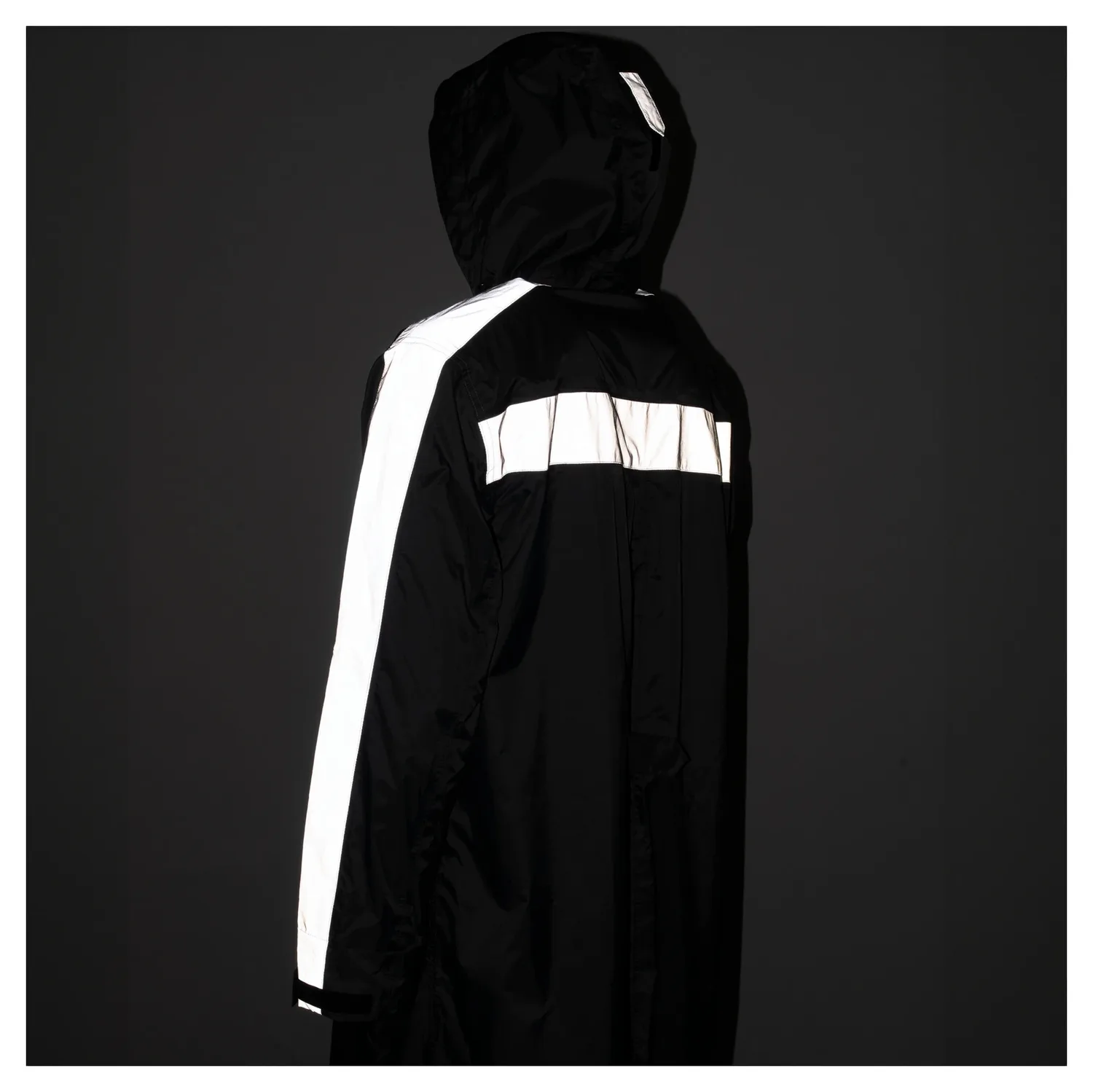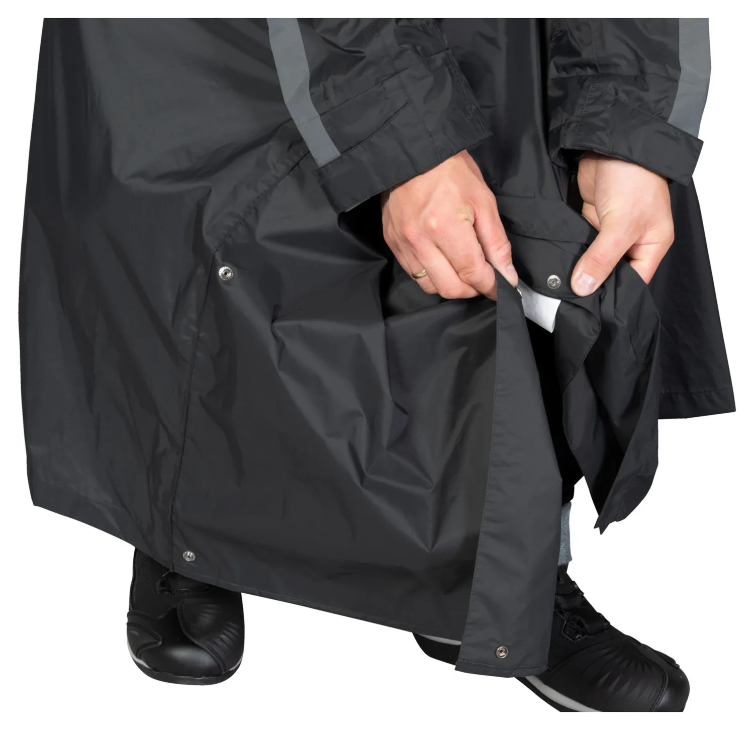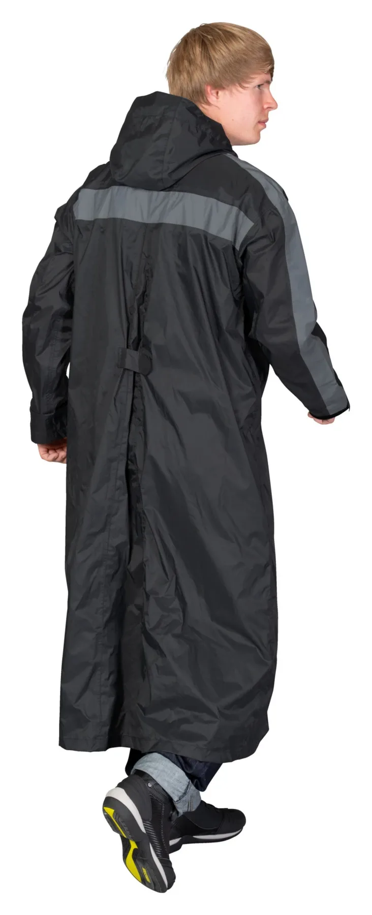 Этот длинный дождевик - абсолютно ветро- и водонепроницаемый - защищает от сырости и холодного ветра. Дополнительно благодаря использованию светоотражающего материала значительно улучшается "быть замеченным".