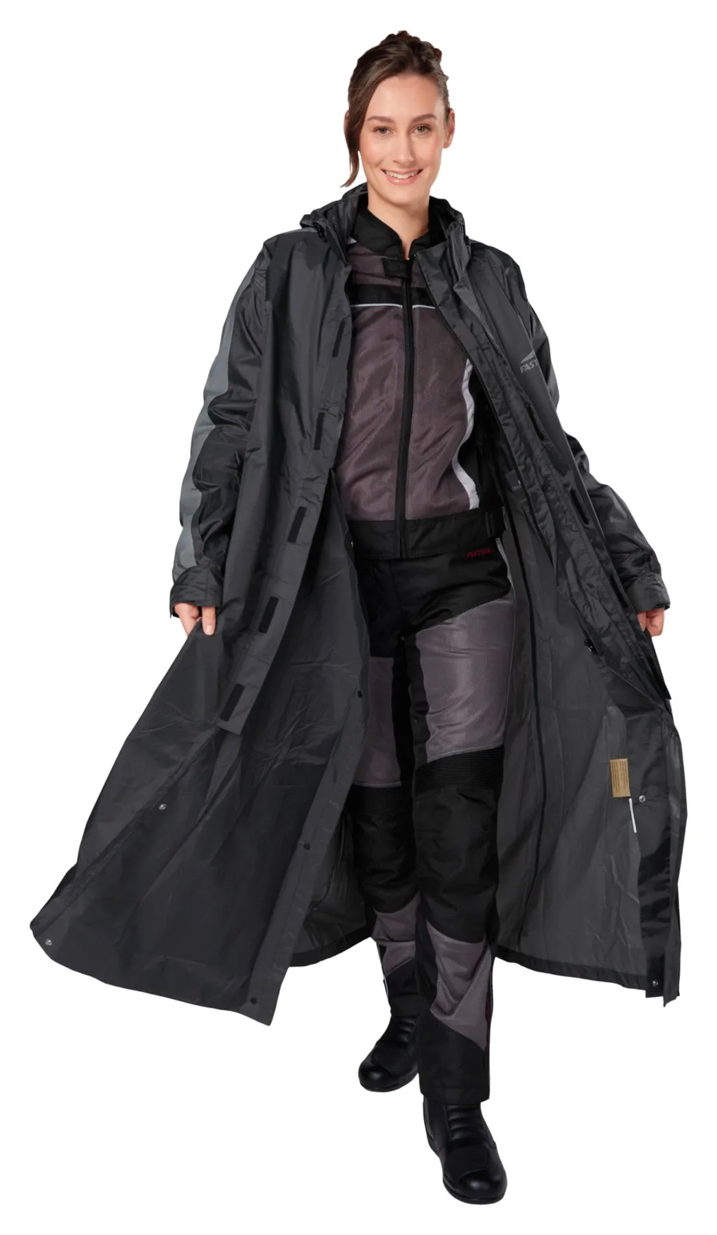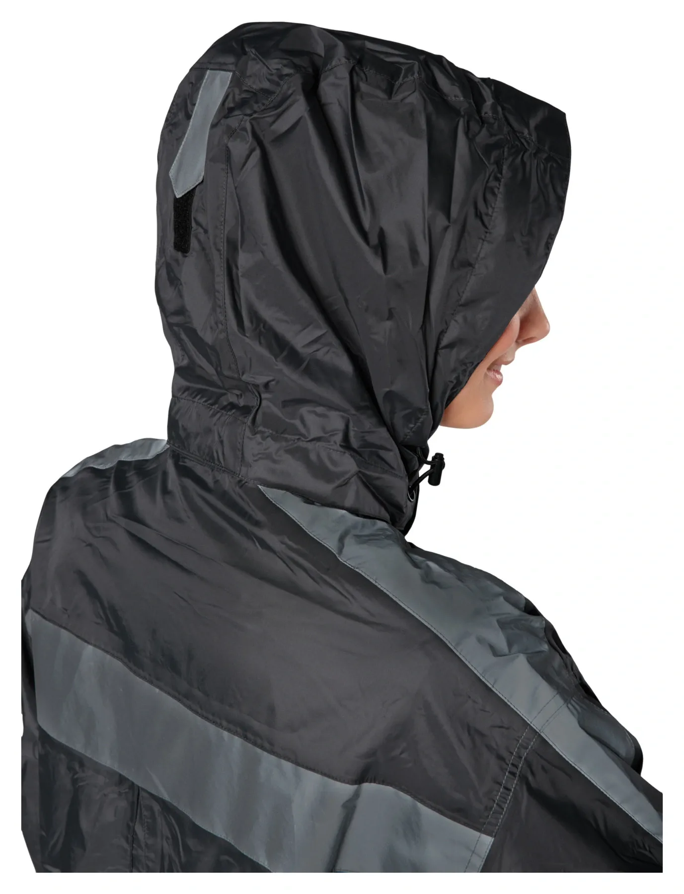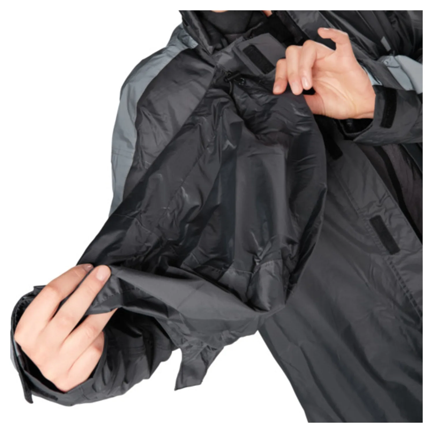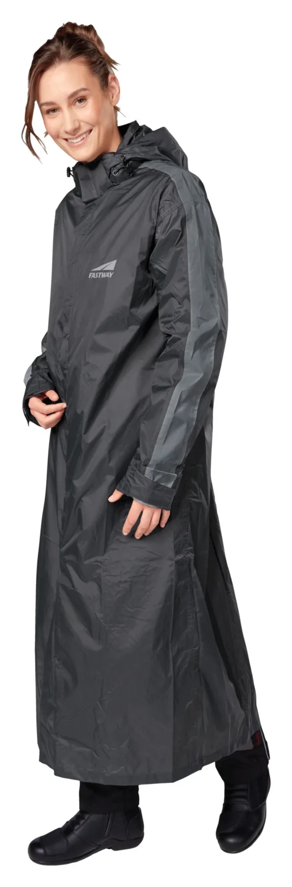 Этот длинный дождевик - абсолютно ветро- и водонепроницаемый - защищает от сырости и холодного ветра. Дополнительно благодаря использованию светоотражающего материала значительно улучшается "быть замеченным".