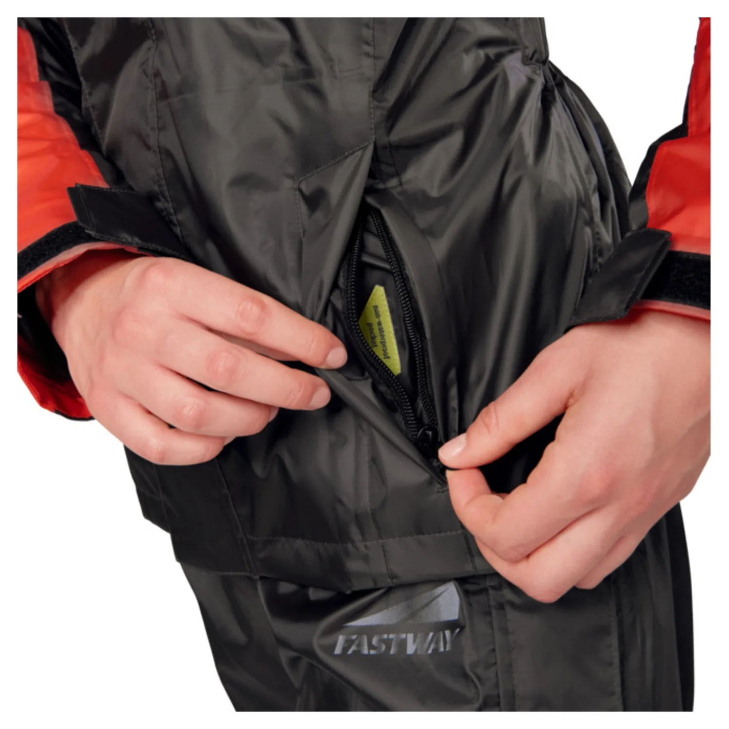 Если вас застала плохая погода в пути на мотоцикле, дождевик Fastway *Rain Basic* защитит вашу верхнюю часть тела от влаги, холода и ветра. Дождевик Fastway *Rain Basic* быстро приходит на помощь. Всего одним движением вы его «раскрываете», надеваете поверх своей чувствительной к воде кожаной или текстильной мотоциклетной куртки и регулируете с помощью липучек. Не обращайте внимания на погоду и дополните куртку подходящими дождевыми штанами Fastway *Rain Basic* (214532). Тогда на дороге вам всегда будет комфортно!
