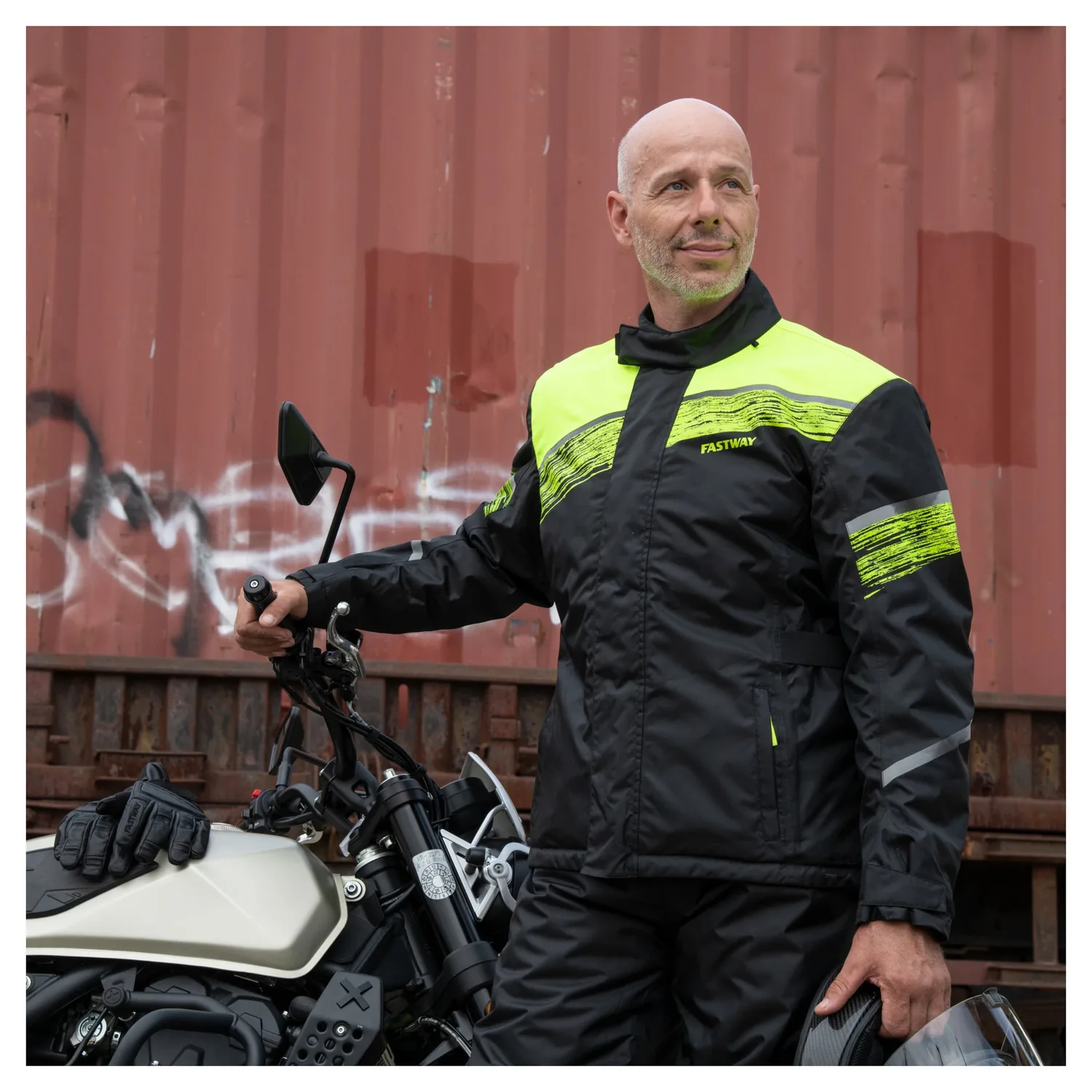 Влажность и холод на мотоцикле - почти нет ничего хуже. Fastway предлагает хорошее средство против этого с термодождевиком *Uni 211*. Это накидка, специально предназначенная для низких температур. Ее утеплитель Thermolite сохраняет тепло тела и обеспечивает больший комфорт в холодное время года. Термодождевик Fastway *Uni 211* предназначен для ношения поверх ненепромокаемой кожаной или текстильной одежды. Он обеспечивает очень хорошую воздухопроницаемость и водонепроницаемость благодаря высококачественному полиуретановому покрытию и светоотражающим материалам. Вместе с одноимёнными термодождевыми штанами (214544) вы получите дождевик, на который можно положиться.