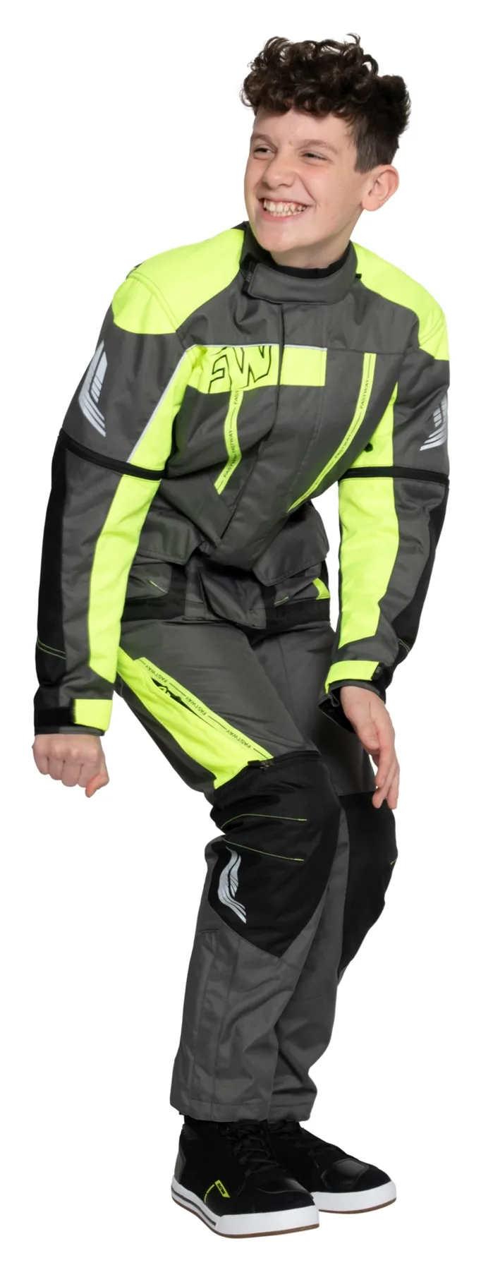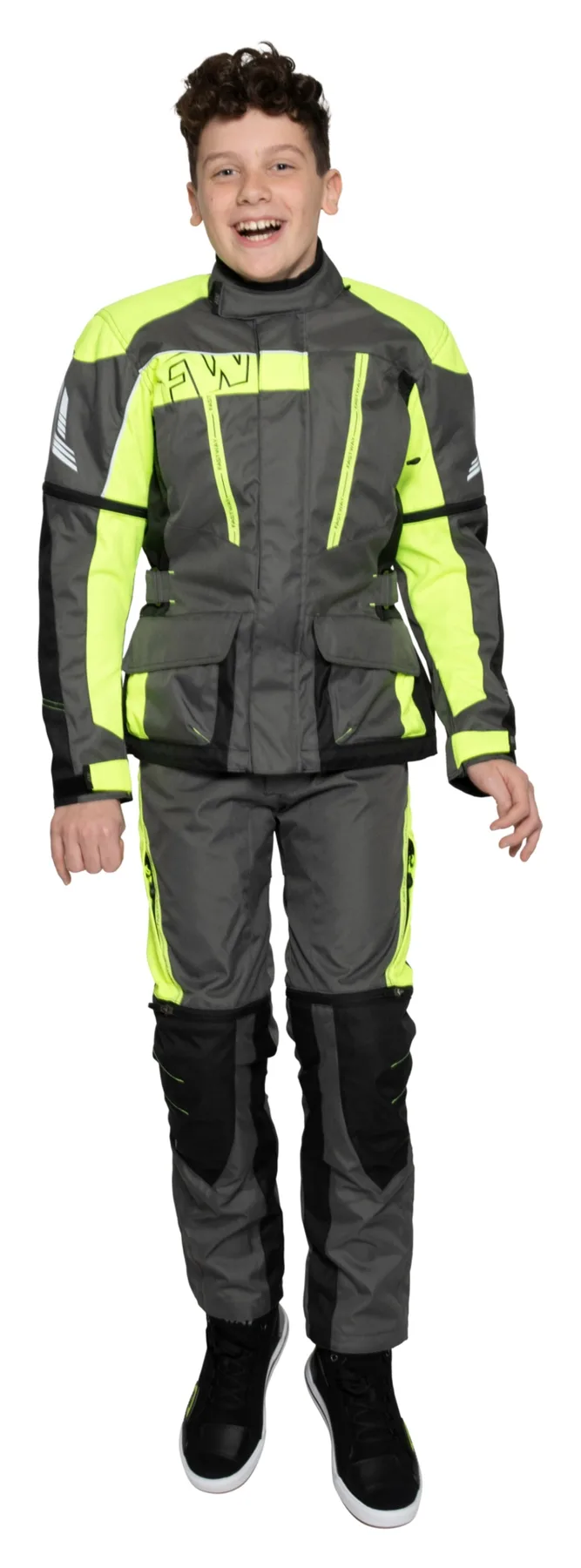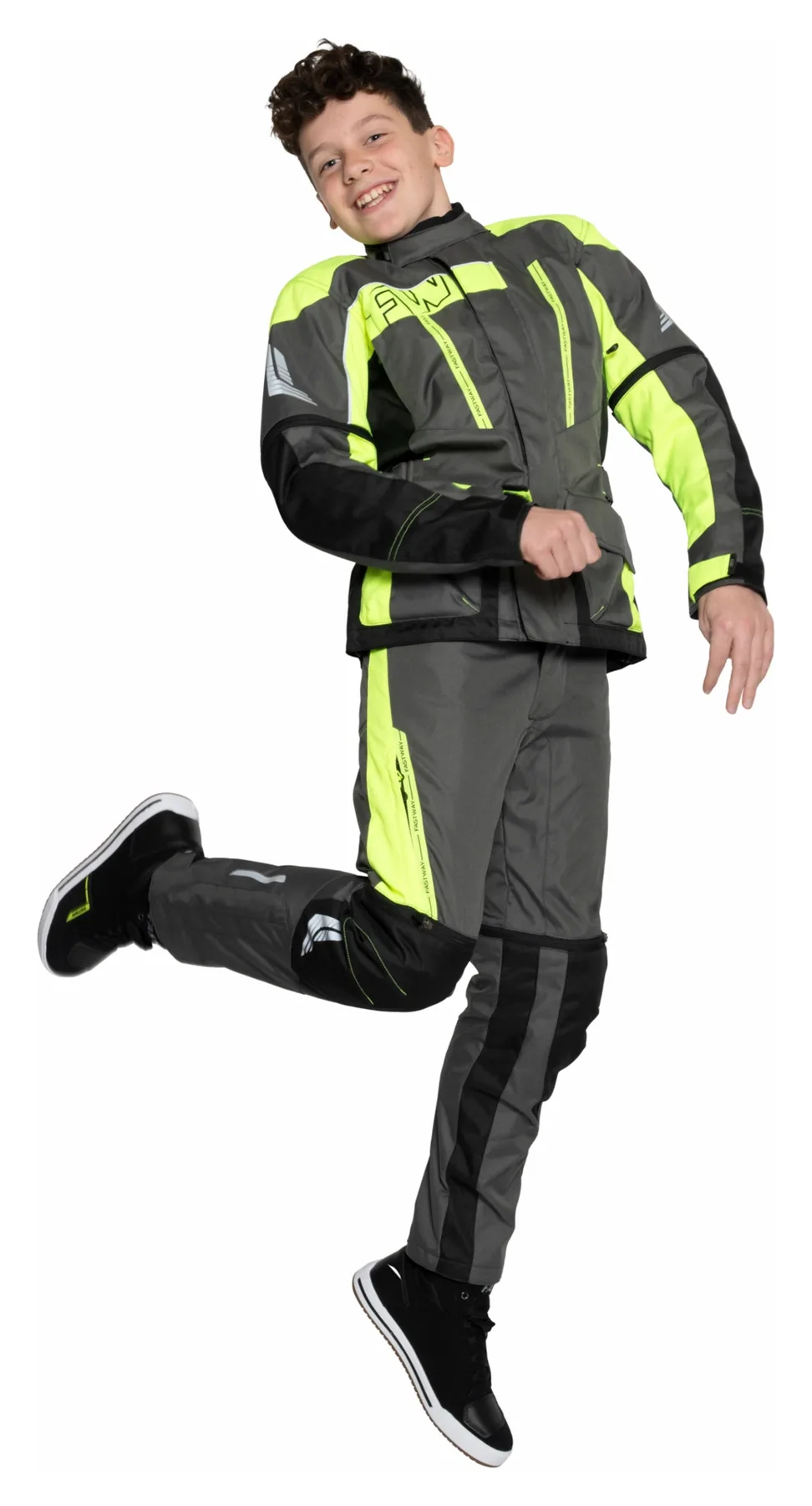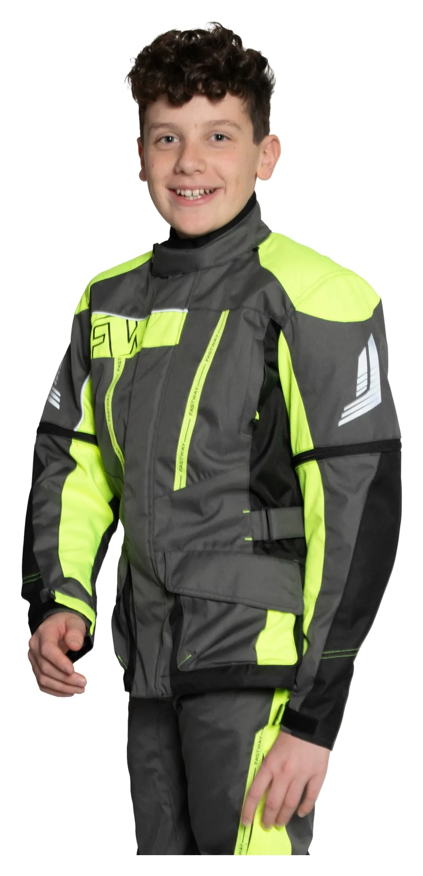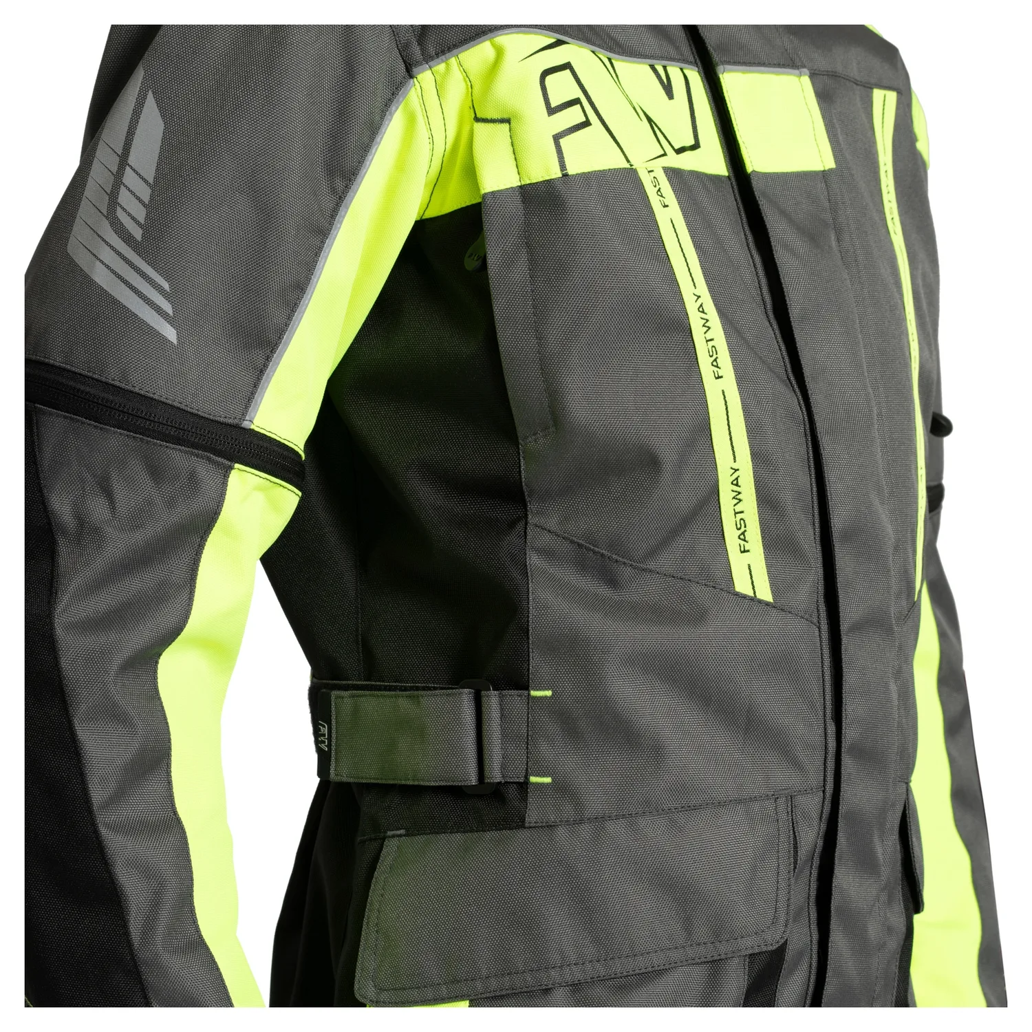 Bei der Fastway *Touring Kids 191* Textiljacke gibt es im Vergleich zu so einer Motorradjacke für Erwachsene eigentlich nur einen Unterschied: die Ärmel wachsen mit. Und zwar bis 4 cm in der Länge. Alles andere an Ausstattungsmerkmalen, an Sicherheit und an Komfort liest sich wie bei den Erwachsenenjacken. Überzeugt euch selbst.