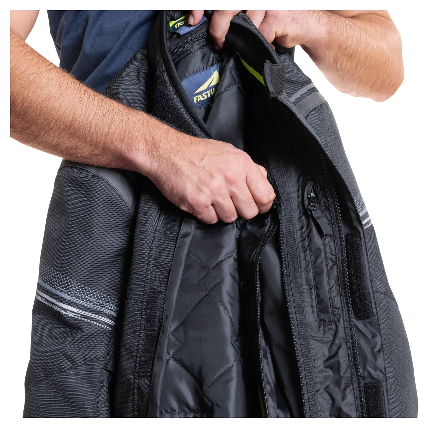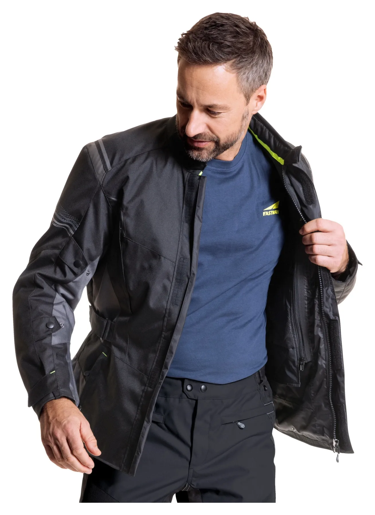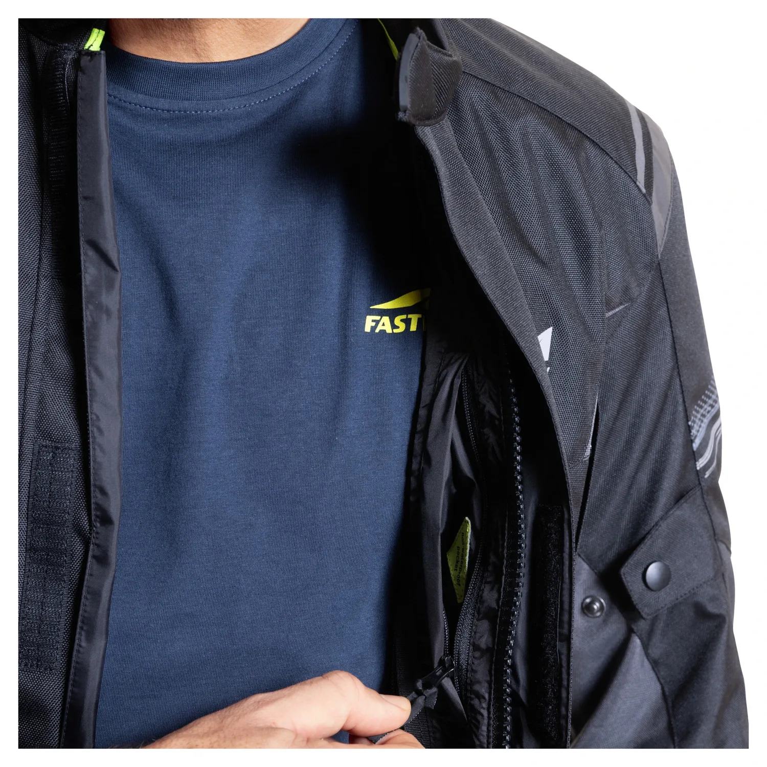 Туринговая мотокуртка *T-2203* от Fastway предназначена для всех, кто садится на мотоцикл в любую погоду. Для тех, кто ездит круглый год, а также для тех, кто любит длительные поездки, всегда уделяя большое внимание функциональности, удобству и безопасности. Текстильная куртка Fastway также впечатляет климатической мембраной и вентиляционными отверстиями на груди и спине, так что вы можете ездить в ней даже в жаркую погоду. Кроме того, *T-2203* доступна в длинных и коротких размерах, а как законный преемник популярной куртки Fastway Season, она представлена в женской и мужской версиях.