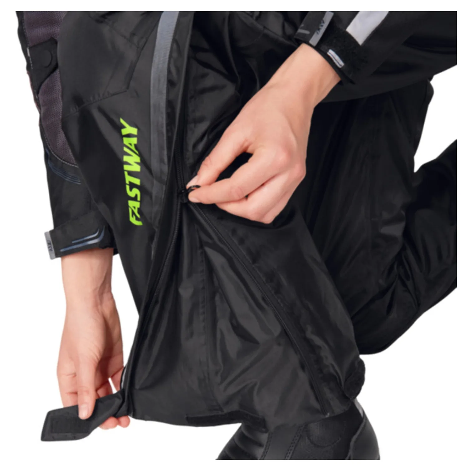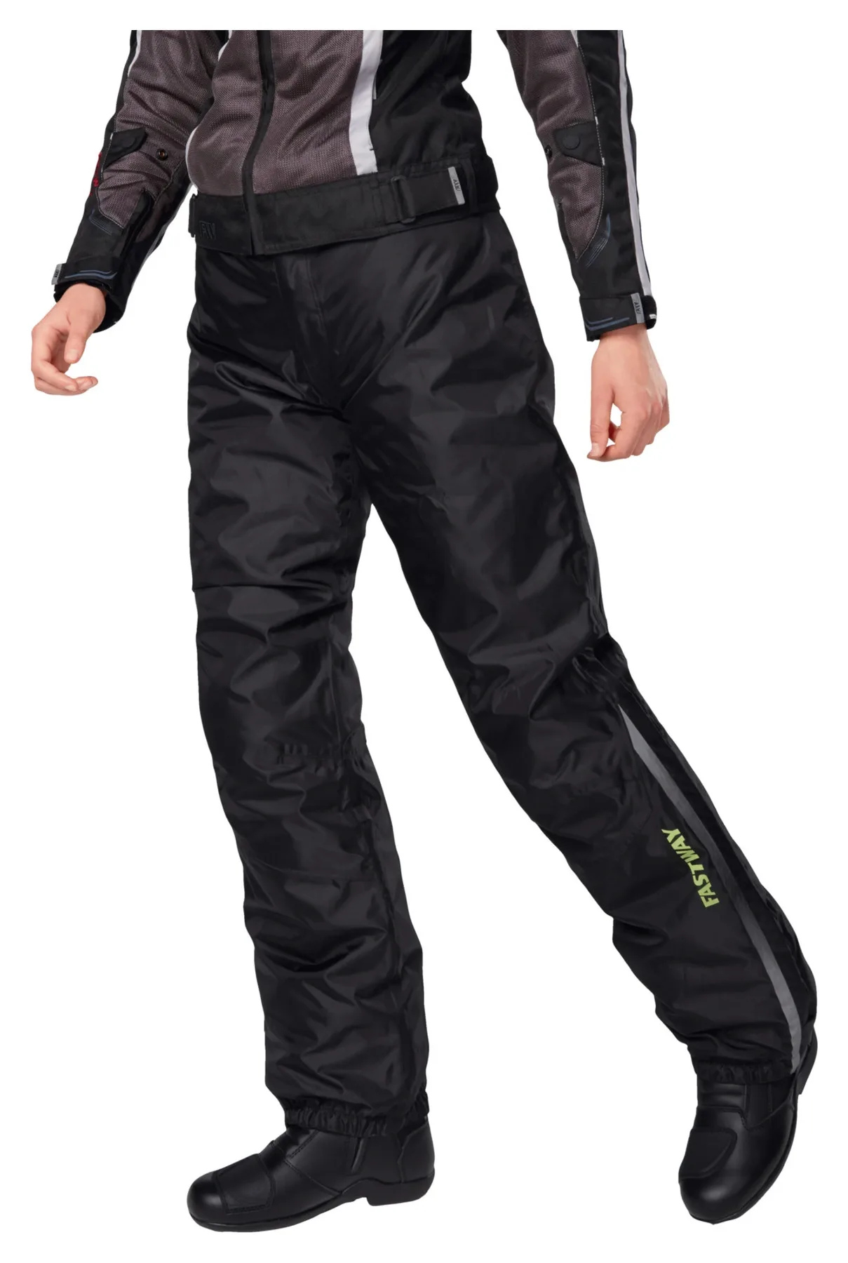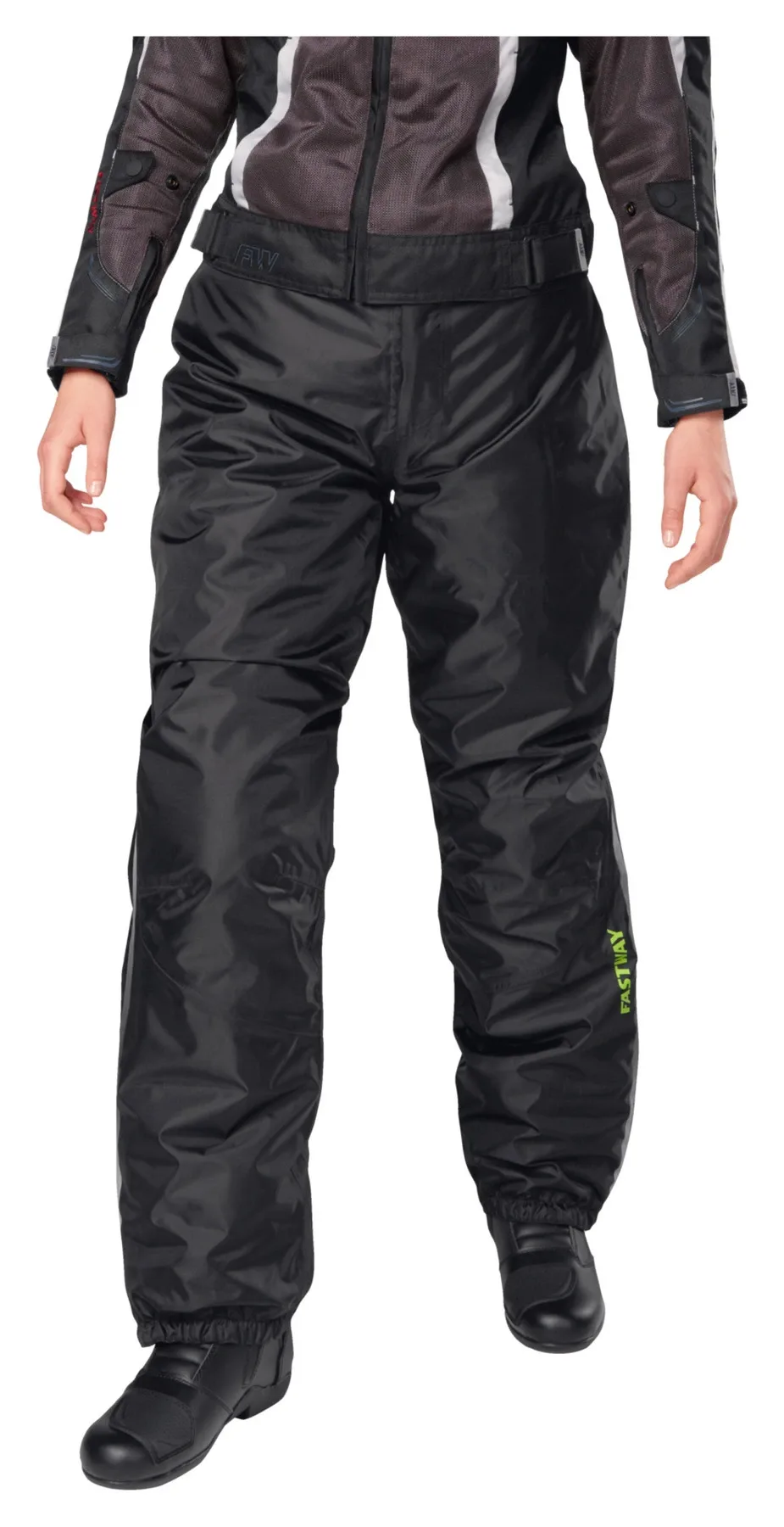 Влага и холод на мотоцикле - почти нет ничего хуже. Fastway предлагает хорошее средство от этого с термодождевыми штанами *Uni 211*. Это штаны-накидка, специально предназначенные для низких температур. Их утеплитель Thermolite сохраняет тепло тела и обеспечивает больший комфорт в холодное время года. Fastway *Uni 211* предназначены для ношения поверх неводонепроницаемой кожаной или текстильной одежды. Они обеспечивают очень хорошую воздухопроницаемость и водонепроницаемость благодаря высококачественному полиуретановому покрытию, а световозвращающие полосы на штанинах обеспечивают еще лучшую видимость. Боковые молнии на штанинах до нижней части бедер облегчают надевание с обувью. Резинки на концах штанин обеспечивают надежную посадку Fastway *Uni 211* и предотвращают их сползание.