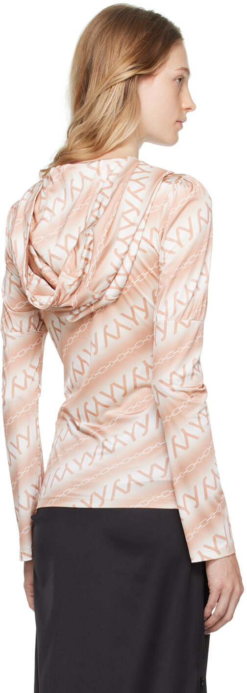 Бежевое худи с цепочкой. Толстовка из эластичного полиэстера. Графический рисунок логотипа напечатан повсюду. Капюшон с кулиской. Застежка на пуговицы. Рукава-фонарики. Цвет поставщика: Бежевый. 92 % полиэстер, 8 % полиуретан. Сделано в Южной Корее.