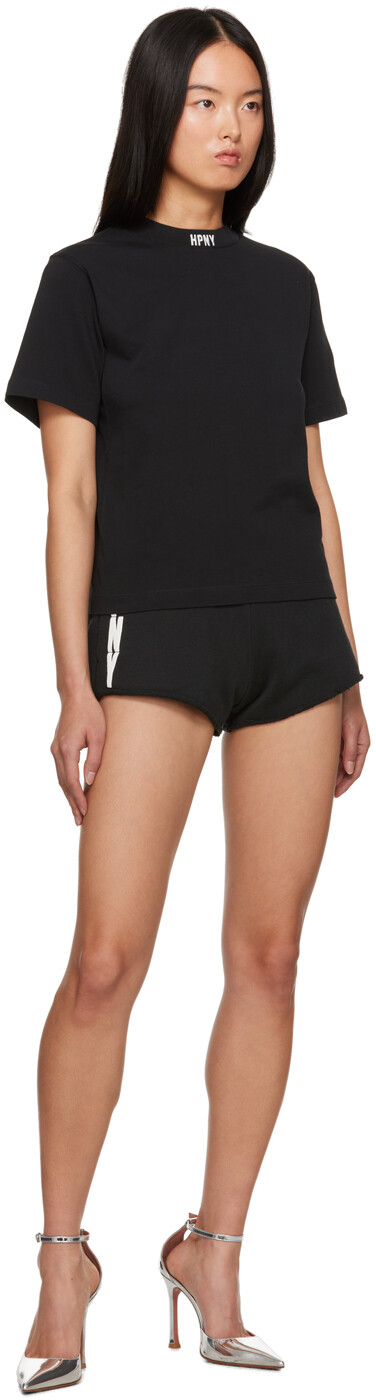 Черные шорты HPNY. Шорты из френч-махры из органического хлопка. Потайная кулиска на эластичном поясе. Два кармана. Напечатанный логотип спереди. Закругленный край манжет. Нашивка с логотипом сзади. Цвет поставщика: черный. Основная часть: 100 % органический хлопок. Отделка: 100% полиэстер. Сделано в Португалии.