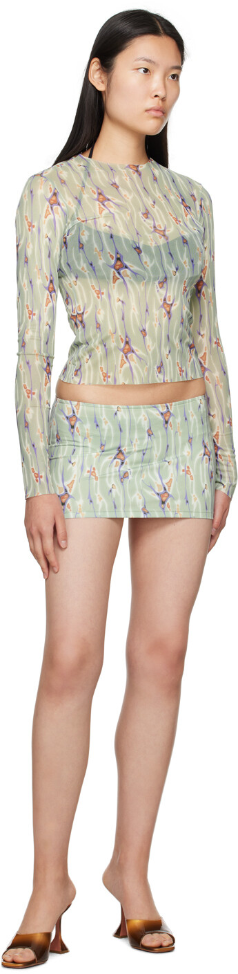 Зеленая мини-юбка Retorno. Юбка из эластичного полиэстера ручной работы. Графический рисунок напечатан повсюду. Пояс на резинке. Без подкладки. Цвет поставщика: Clavo 80 % полиэстер, 20 % эластан. Сделано в Португалии.