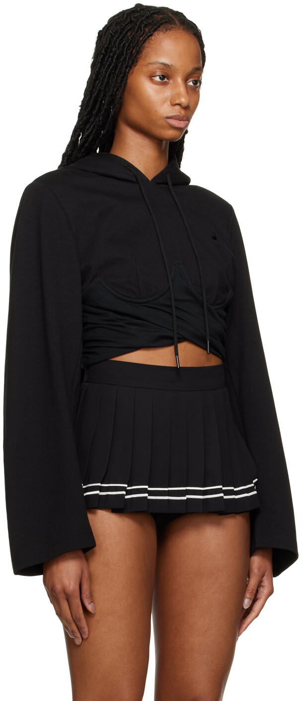 Черная толстовка с капюшоном. Толстовка из хлопкового трикотажа. Капюшон на кулиске Вышитый логотип на груди Вытачки на чашках Обвязка спереди Витая отделка по краю Цвет поставщика: Черный 100% хлопок. Сделано в Южной Корее.
