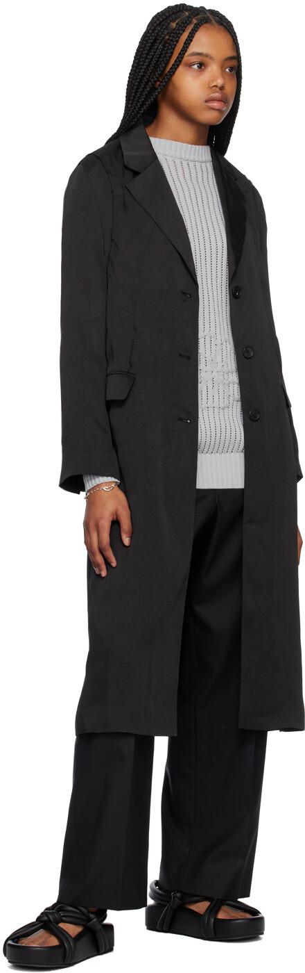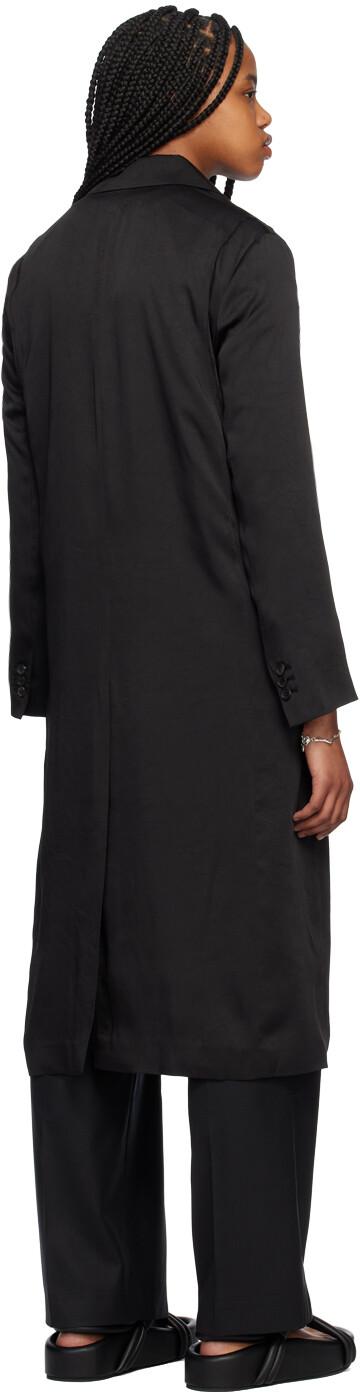 Черное мятое пальто. Пальто из полиэстера из жатого атласа. Зазубренный лацкан Застежка на пуговицы Карманы с клапанами Три пуговицы на манжетах Центральная шлица сзади по краю Полная атласная подкладка из купро Цвет поставщика: Черный Основная часть: 100 % полиэстер. Подкладка: 100% купро. Сделано в Южной Корее.