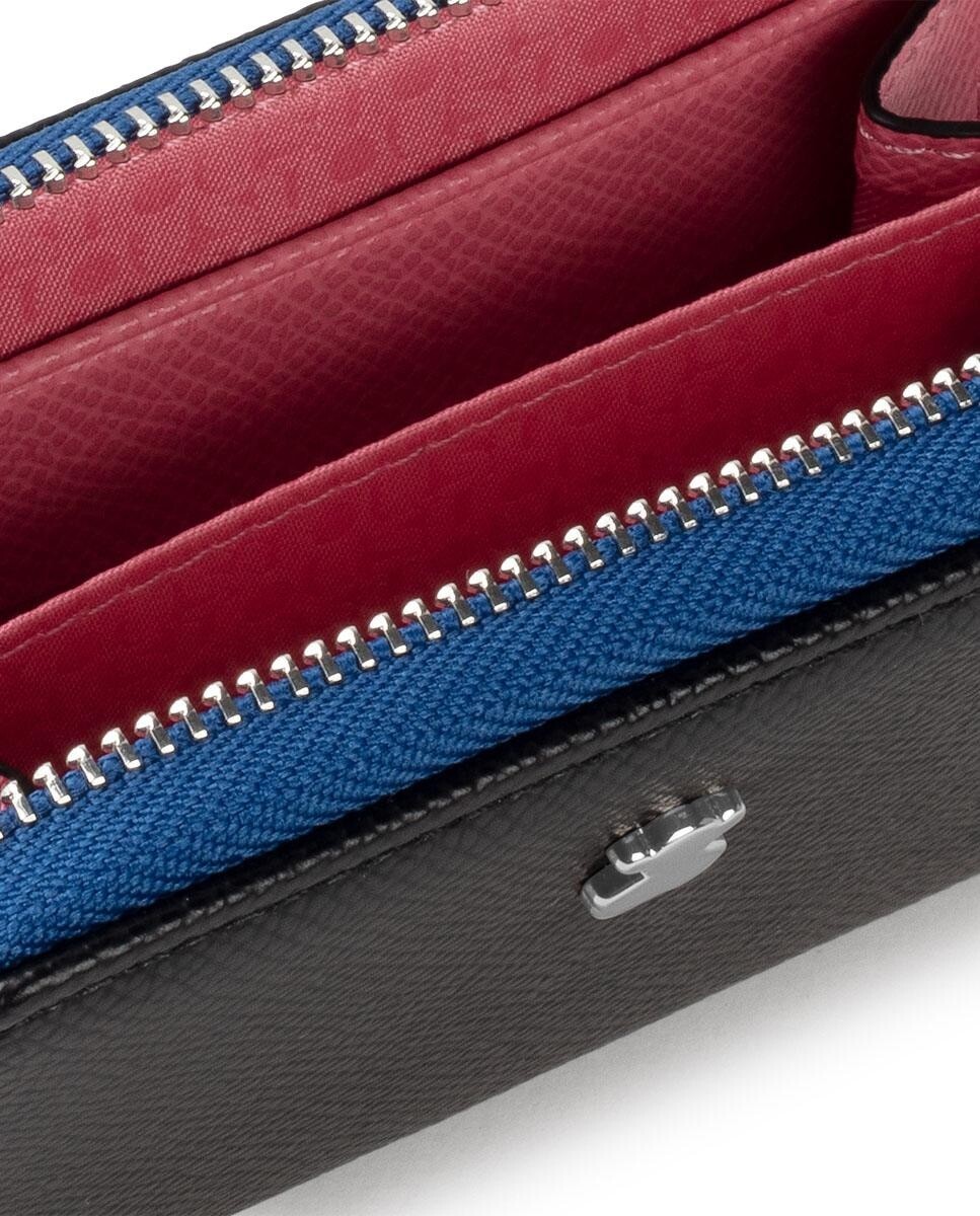 Средний кошелек TOUS из коллекции New Dubai из полиуретана с эффектом сафьяна в черном и синем цвете. Застежка-молния и два отделения для монет. Размеры: 11 х 8 х 3 см.