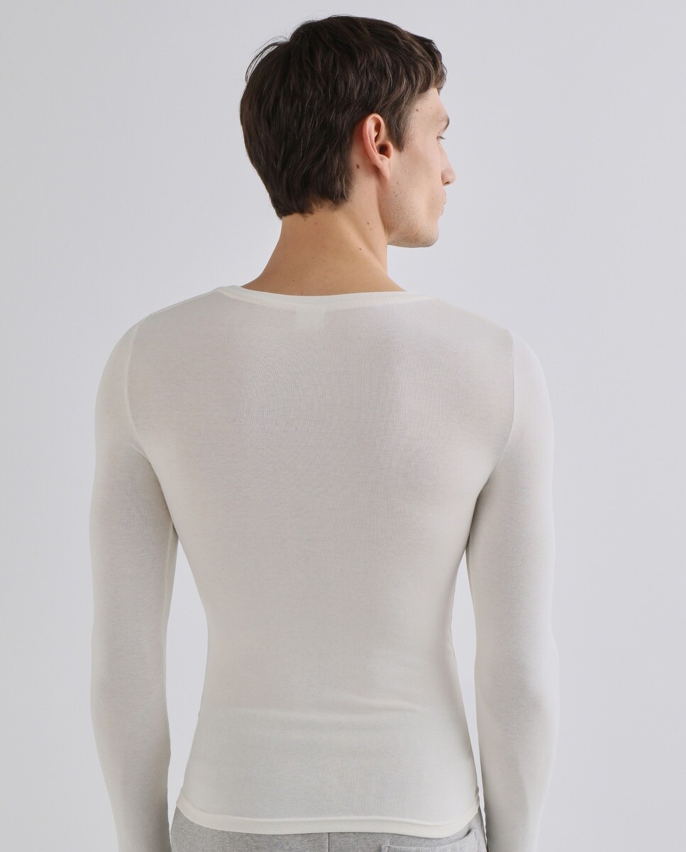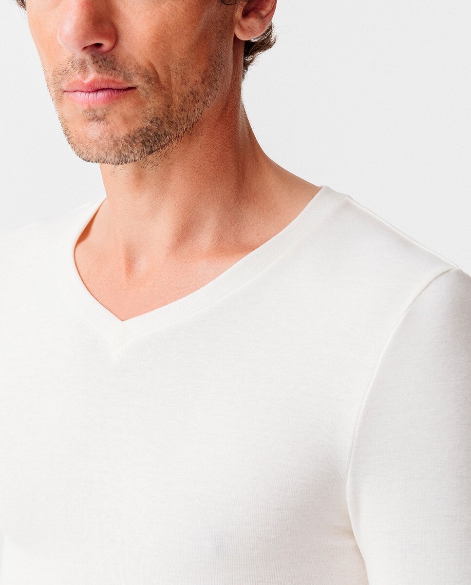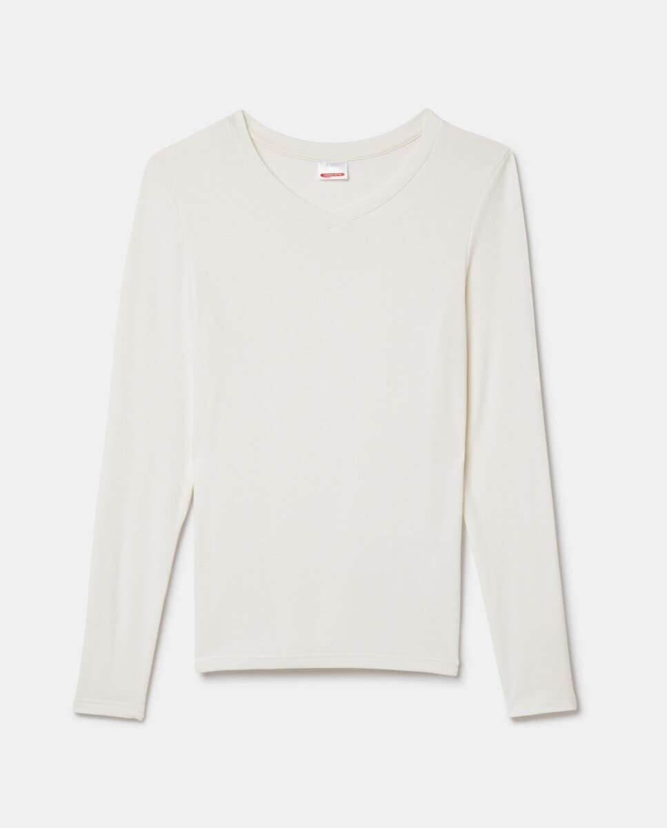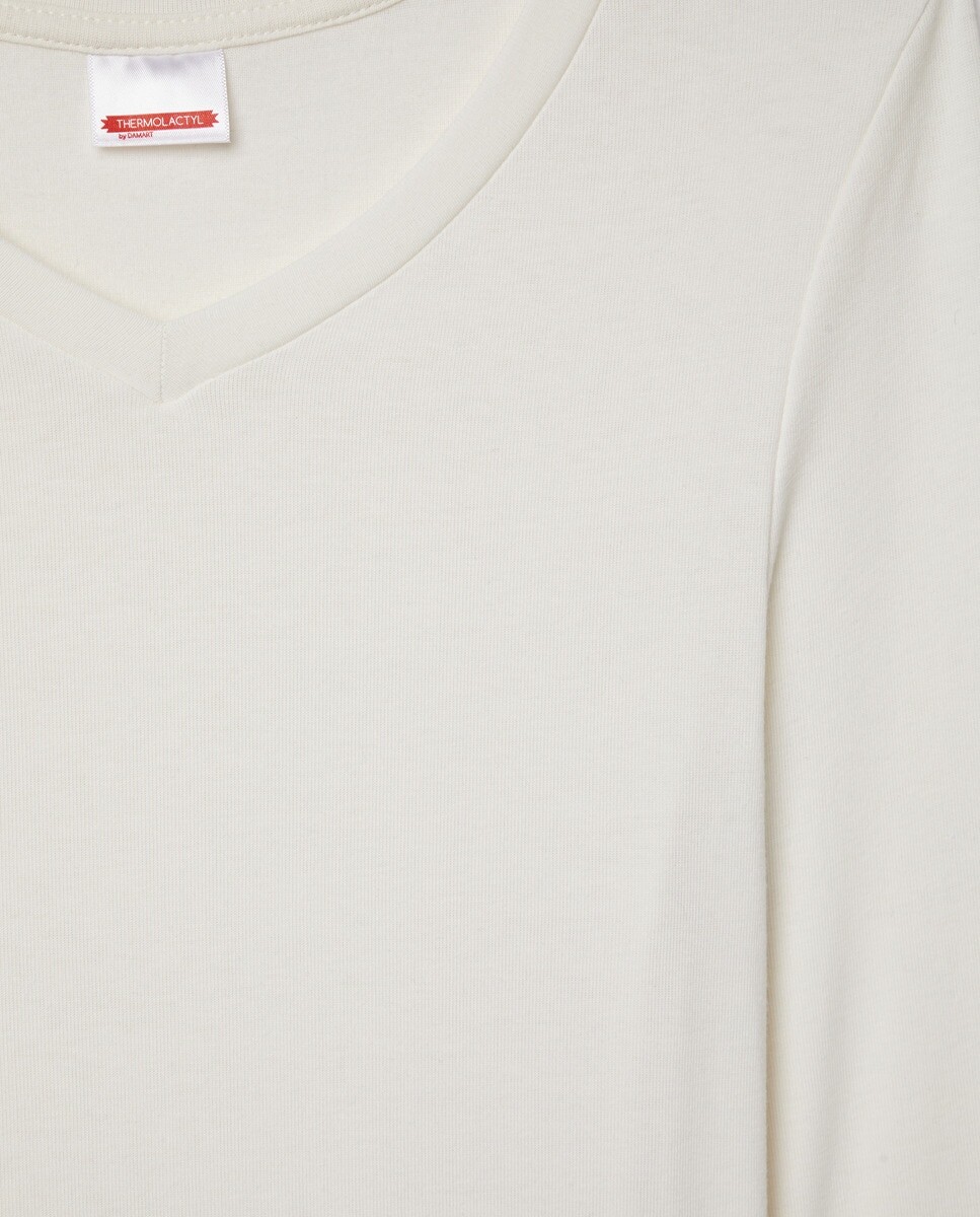 Приближаются холода... Эта футболка с V-образным вырезом и длинными рукавами обеспечивает невероятную мягкость и оптимальное тепло. Инновационный, он поддерживает увлажнение поверхностных слоев кожи естественным и длительным образом * благодаря сочетанию материалов, связанных с эластаном. Это нижнее белье из эластичного микроволокна, изготовленного из термолактильных волокон, можно носить с пижамными штанами дома. * + 17% увлажнения после 4 часов использования. Тест проводился на 13 человек. Среднее значение измерено в поверхностном слое кожи после 4 часов использования. 3 класс, комфортное тепло.